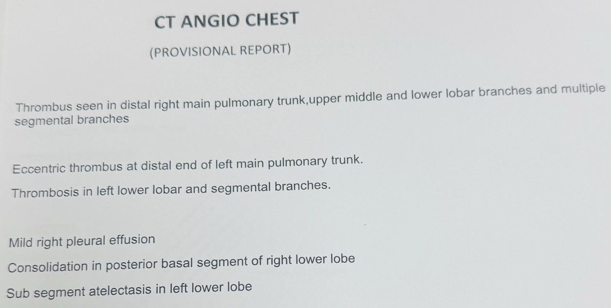 This justified immediate imaging with CT Pulmonary Angiography (CTPA).