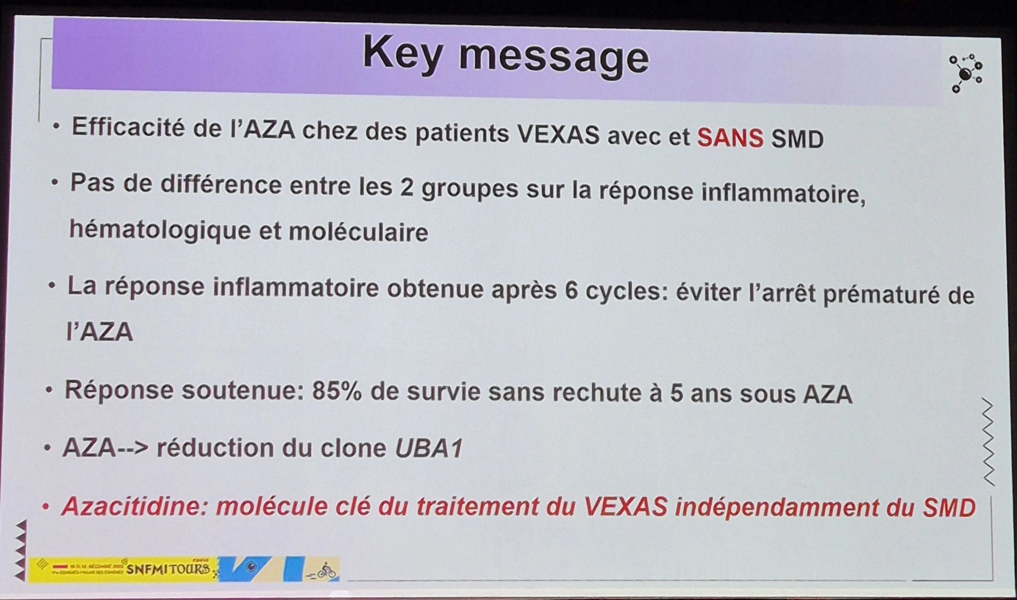 - proven efficacy of azacitidine treatment in VEXAS patients, even in the absence of myelodysplastic syndrome