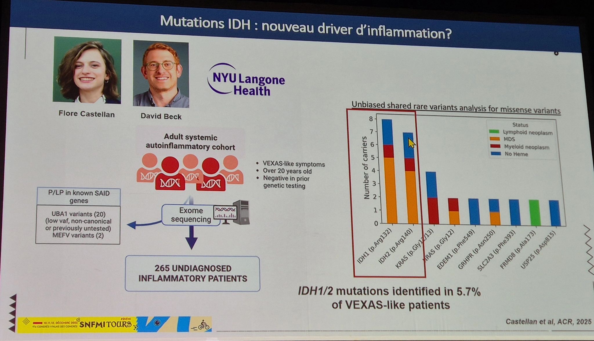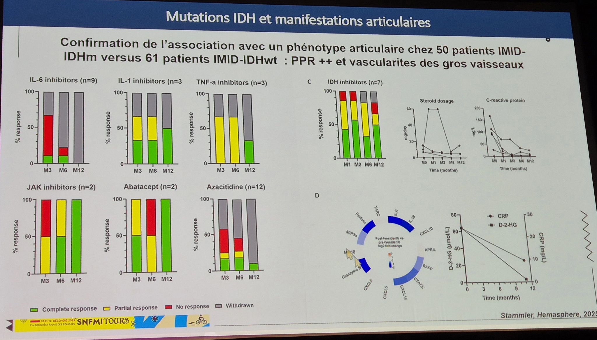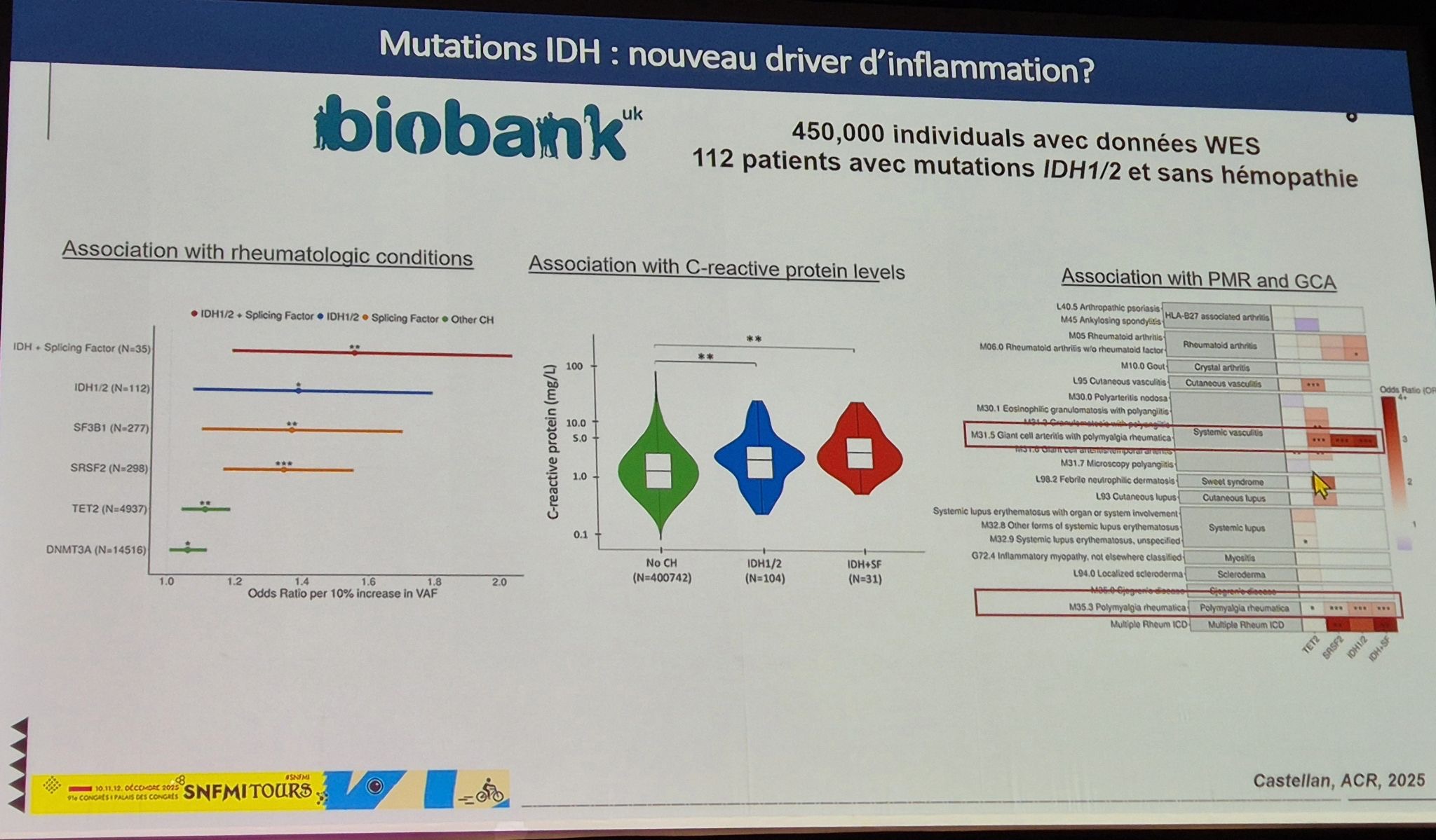 - new links found between clonalhematopoiesis with IDH mutations and inflammatory manifestations (polymyalgia rheumatica and large-vessel vasculitis), with resolution under targeted inhibitors”