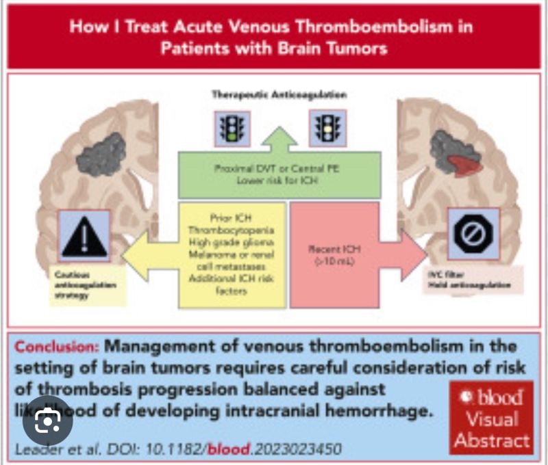Patients with brain tumors are at high risk of thrombosis, especially cerebral venous thrombosis (CVT).