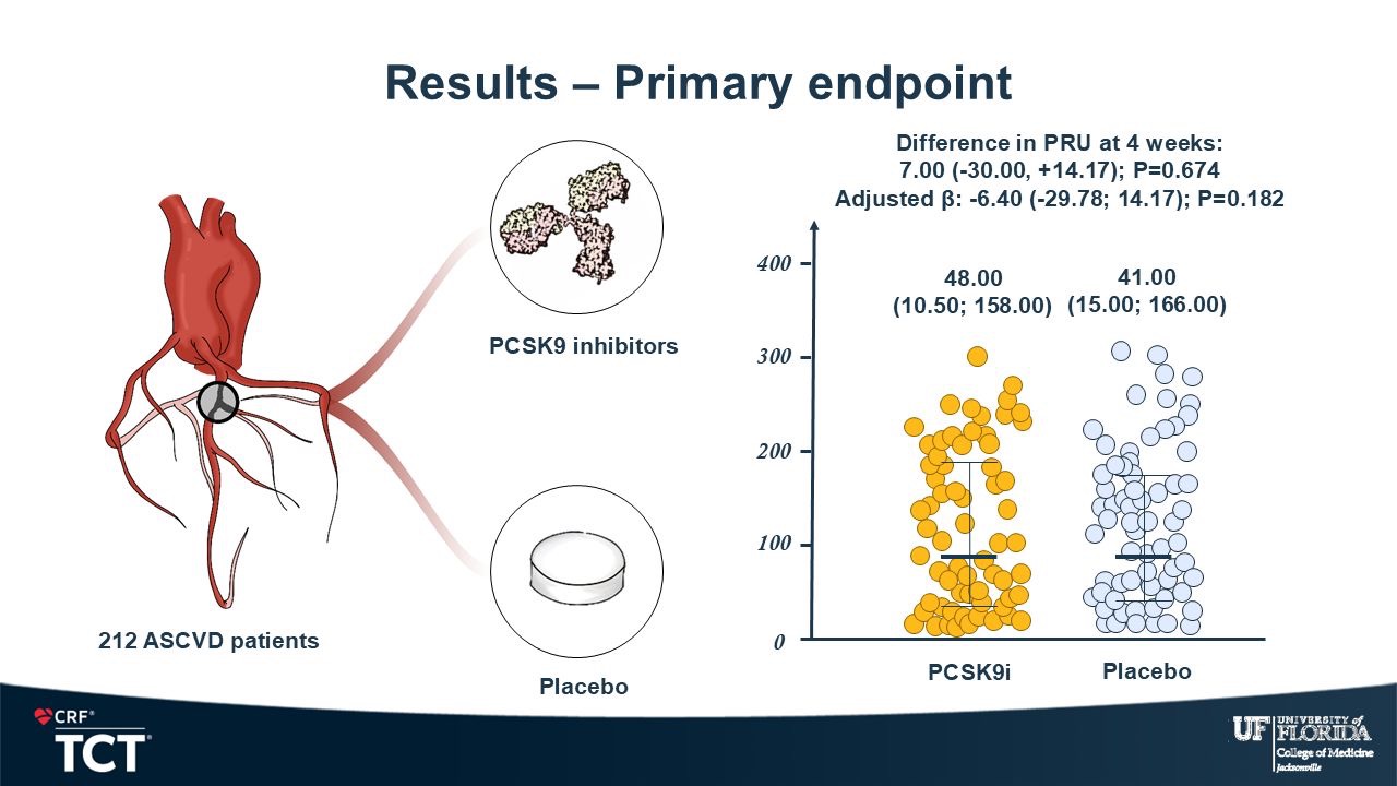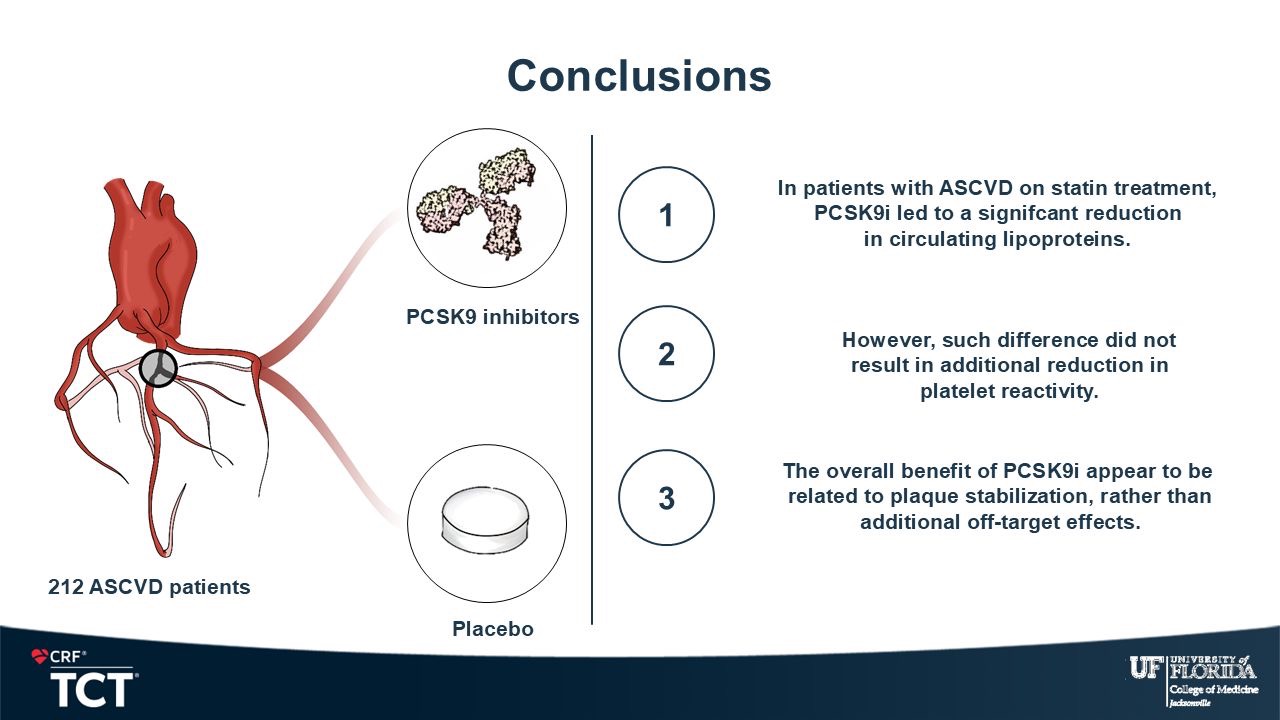 To answer this gap in knowledge, we performed a collaborative individual patient data meta-analysis of randomized controlled trials finding that, although PCSK9 inhibitors significantly reduced circulating lipoproteins, such reduction did not translate into any significant change in platelet reactivity at 4 weeks.