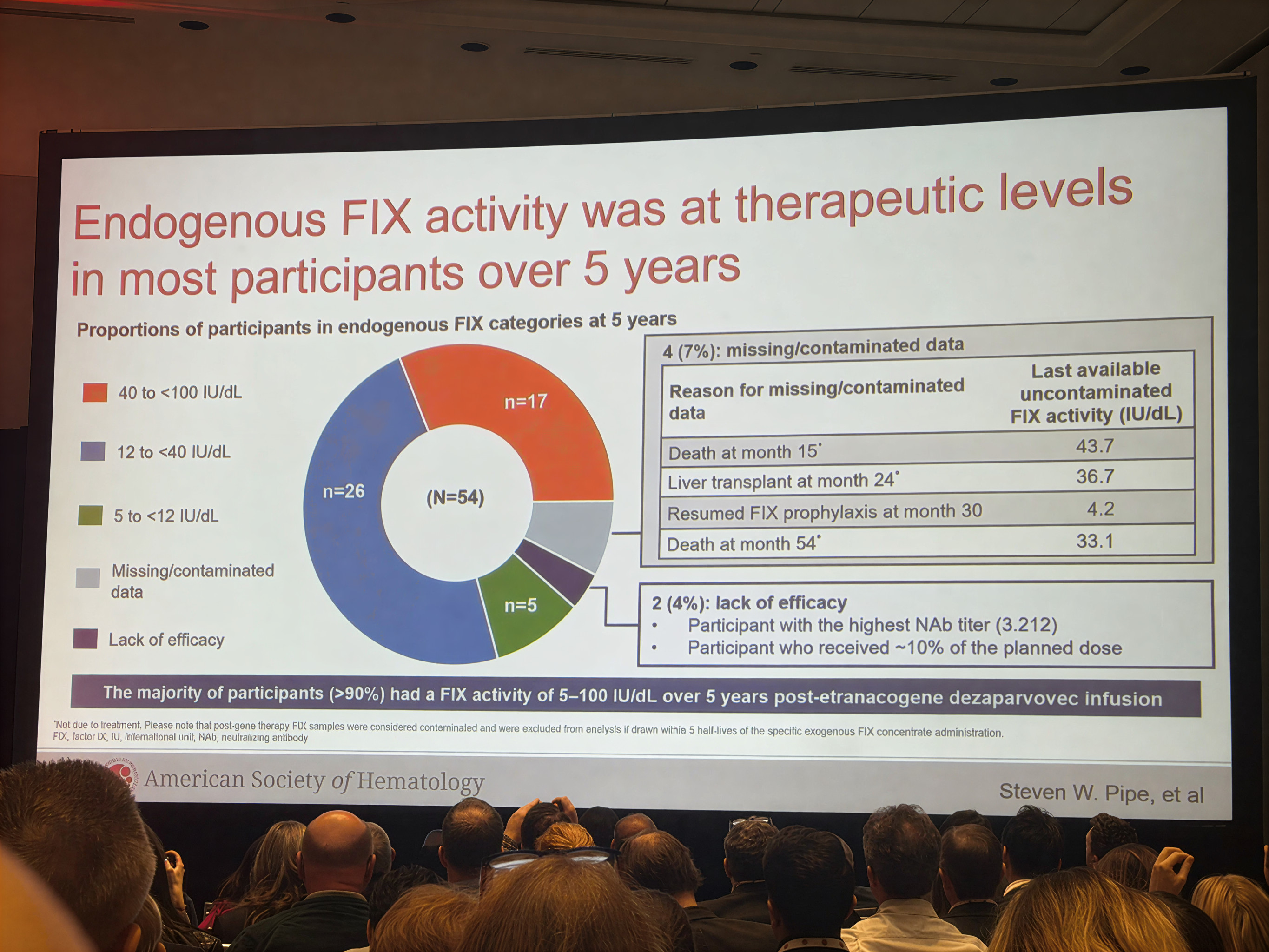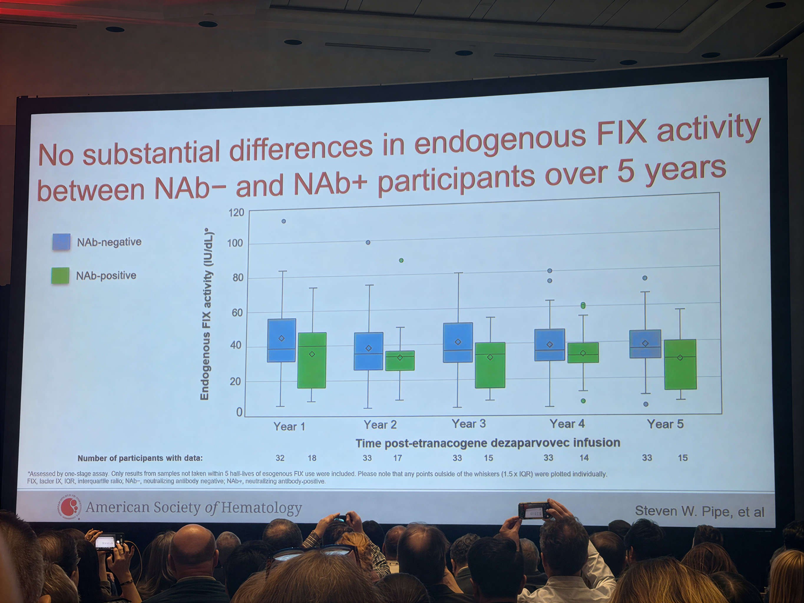 The boxplots illustrate a pivotal finding: no substantial difference in endogenous FIX activity over time, even in those with pre-existing AAV5 antibodies. This is a game-changer for expanding eligibility in real-world practice – many patients previously thought “ineligible” can now benefit.
