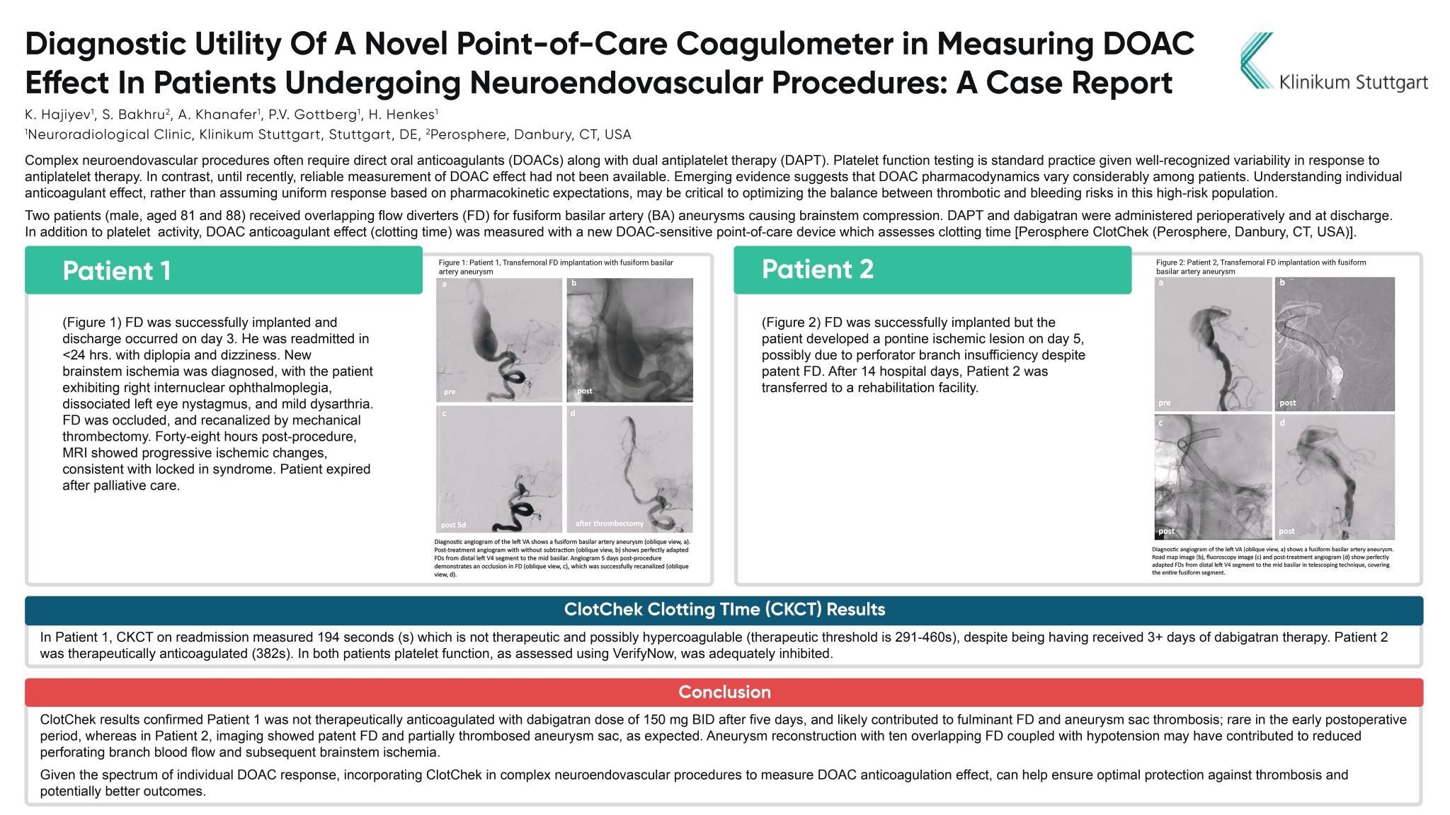 Together with my colleague Ketevan Mikeladze, I presented five scientific projects from our team at Klinikum Stuttgart, led by Professor Hans Henkes.