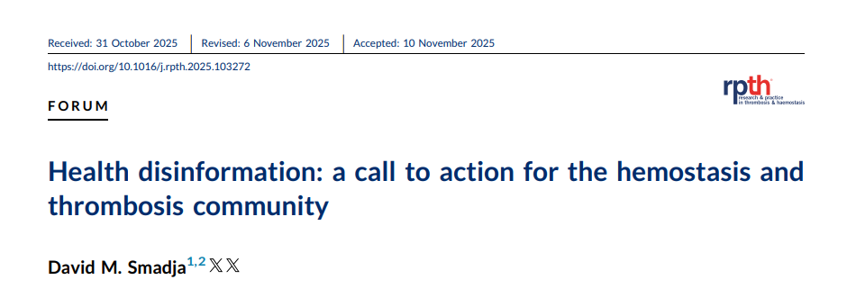 “An interesting and important article on misinformation and how to tackle it has been published in Research and Practice in Thrombosis and Haemostasis. The PDF is freely available to all.”