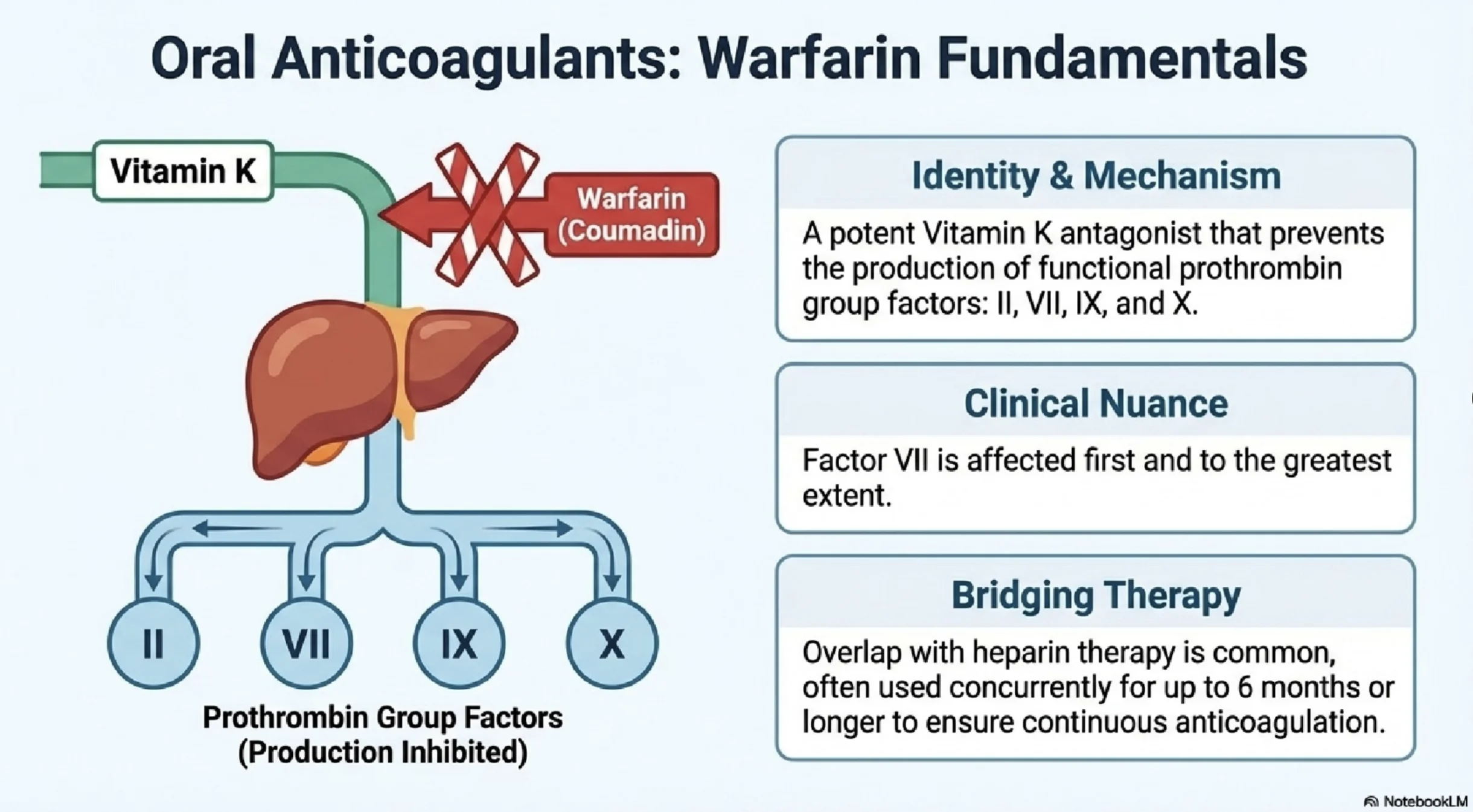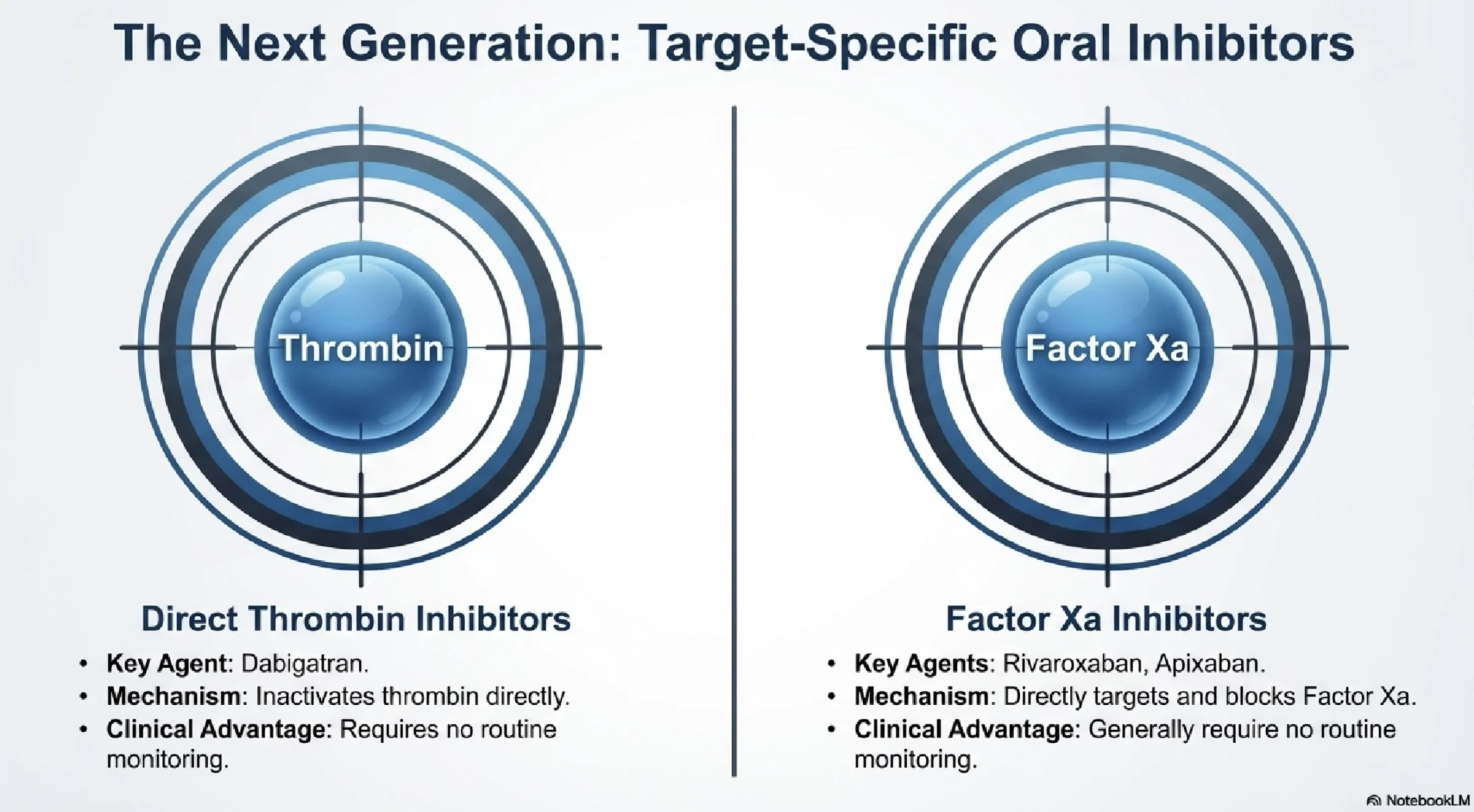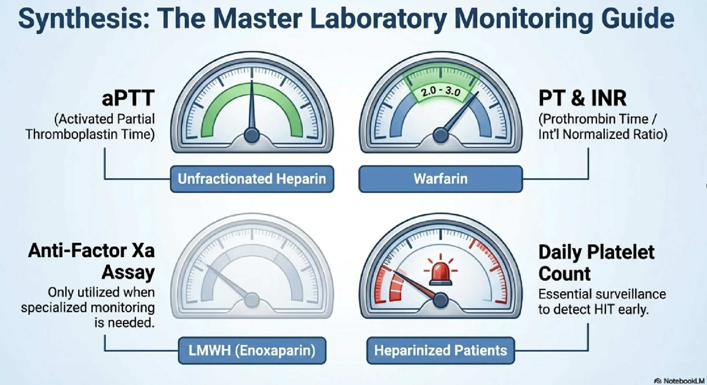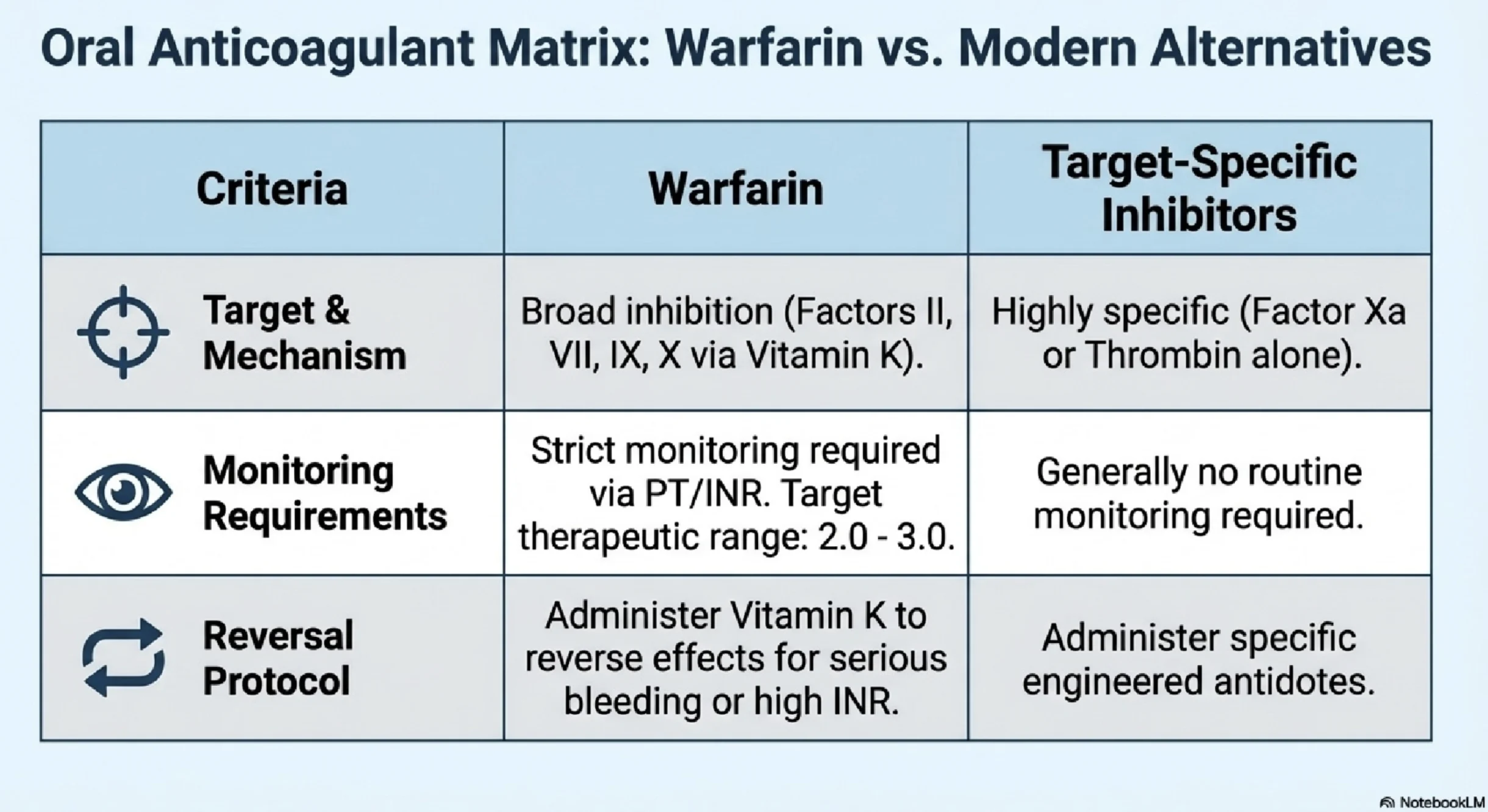 It includes comparative notes on Warfarin, Heparin, Dabigatran, Rivaroxaban, and Apixaban, along with practical insights on PT/INR, APTT, and anti-Xa assays.