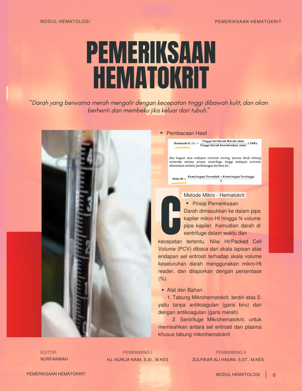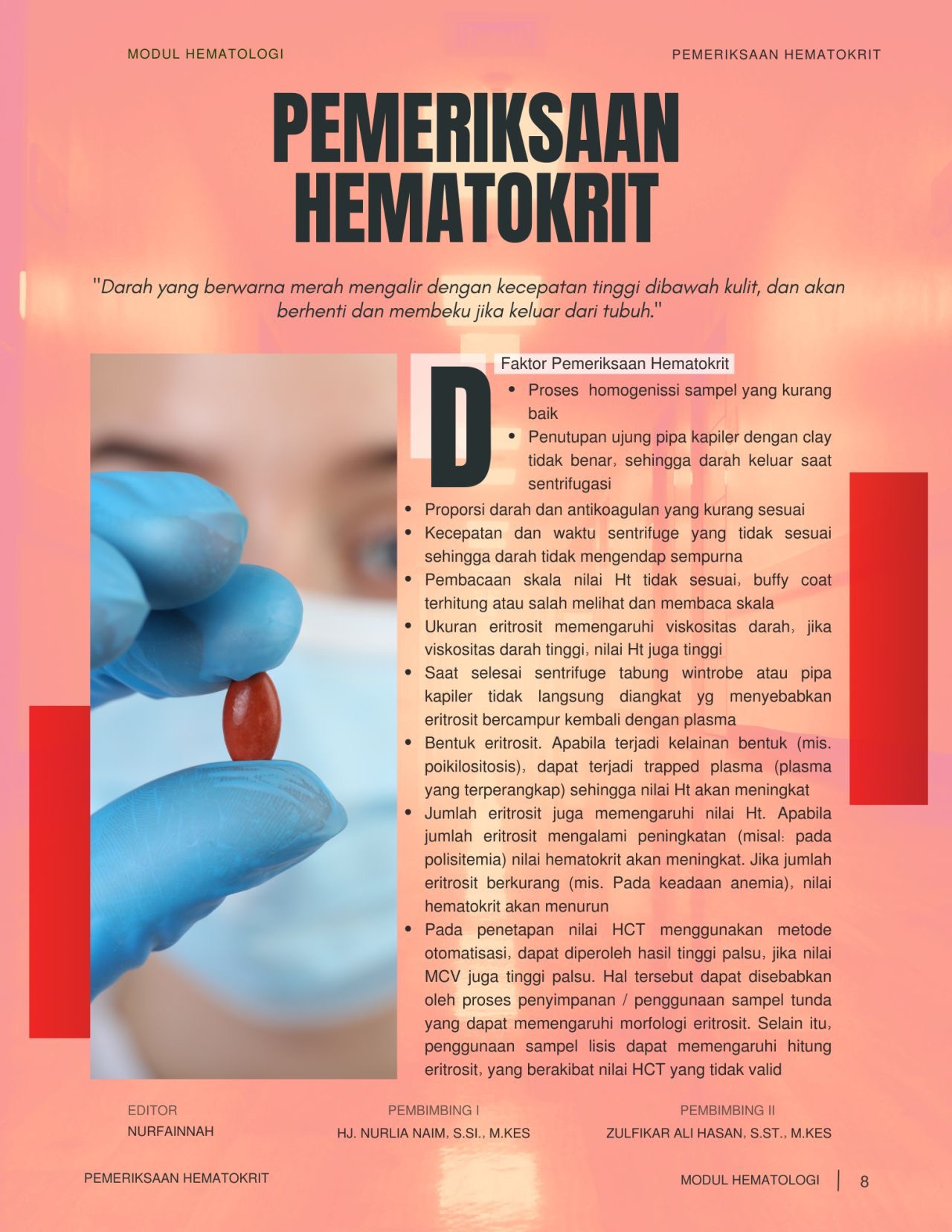 I would like to share the e-module “Hematocrit Test” that I compiled during my studies in Medical Laboratory Technology