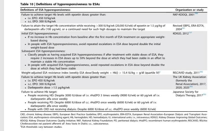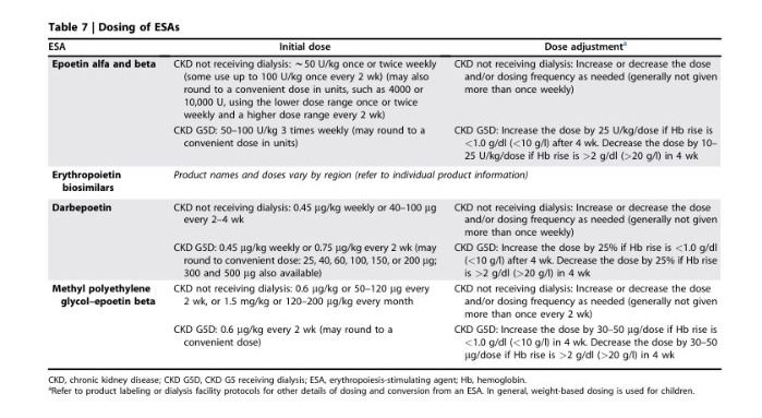 – Dialysis: start when Hb ≤9–10 g/dL.