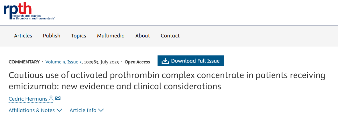 ”Did you hear the news? Our sister RPTH Journal has an exciting Research Recap coming up next week! Join to hear from Robert Sidonio, MD,MSc, author of the recently published RPTH article: “Activated prothrombin complex concentrate in patients receiving emicizumab prophylaxis: from evidence to clinical practice.”