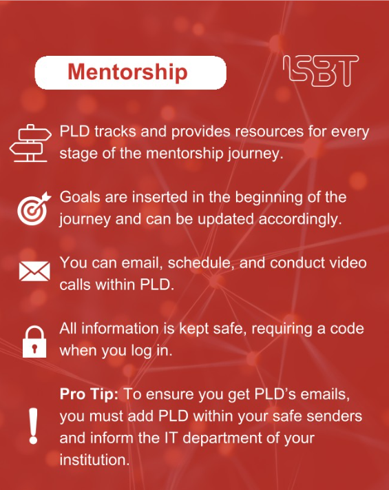 ”For today’s Mentorship Monday we’re spotlighting the platform that facilitates the ISBT Mentorship Programme: Perform, Learn, Develop (PLD). It’s an all-inclusive software built to facilitate the entire mentorship journey.