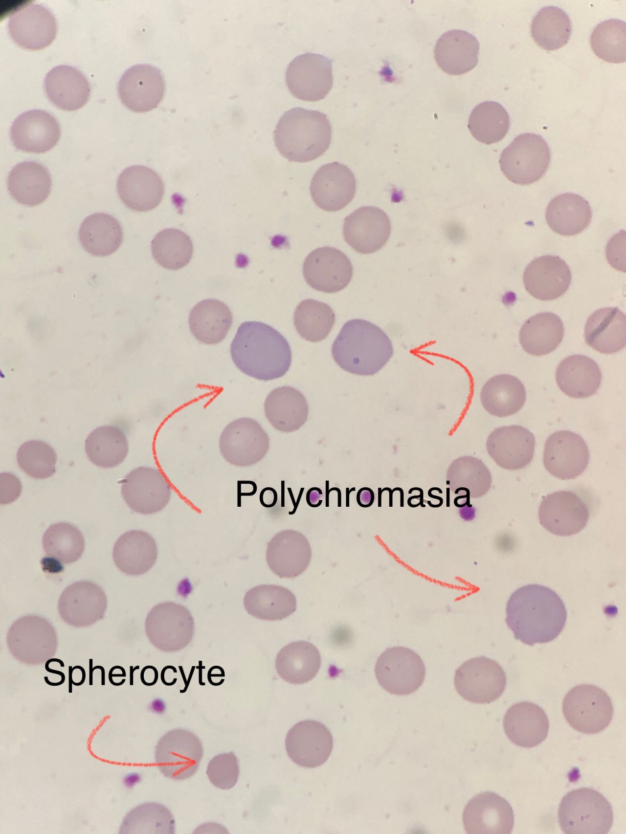 “Good evening to all , our case today contain very strange and rare combination of 2 causes of hemolytic anemia . First this 35 years male came to ER with very strong body pain , fatigue, pale color and dark urine that he noticed . The CBC showed Marked severe anemia with Macrocytic RBCs and normal WBCs with normal platelet count . Also very high Retics and bilirubin honestly at the begening I thought it’s sickle cell crisis , very low HGB , high MCV and high Retics . Then we after checking his history I found he is negative for sickle and his last CBC had much higher HGB with 11.3 and now 5.06 only