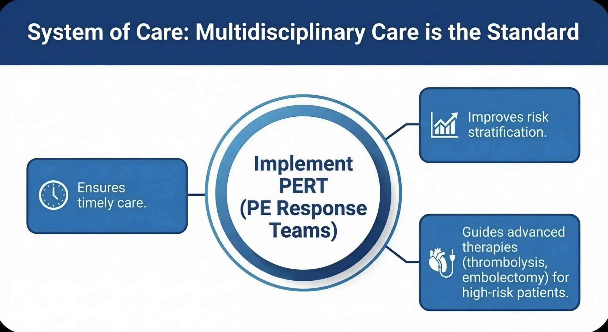 The implementation of PE Response Teams (PERTs) is highly recommended to ensure timely, risk-stratified interventions for high-risk patients.