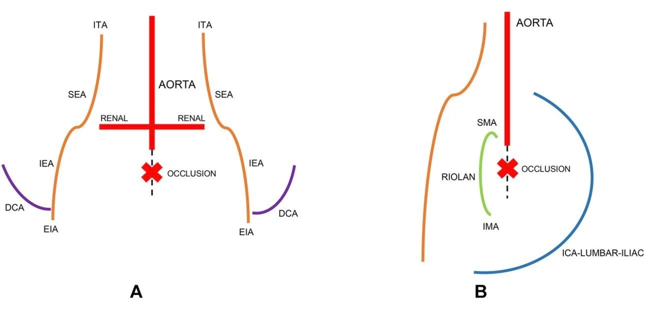 Article: Collateral anastomosis in Leriche syndrome complicated by presumed mycotic thoracoabdominal aneurysm