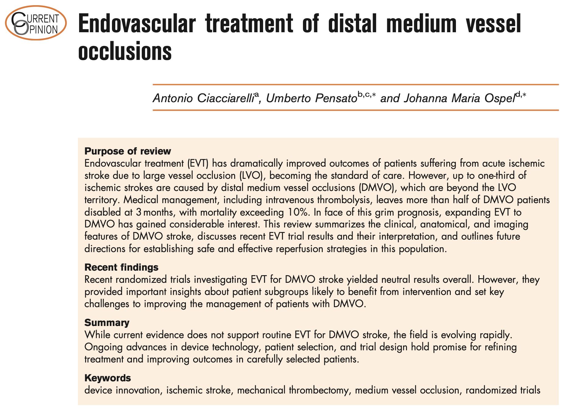New Insights from Antonio Ciacciarelli on Endovascular Treatment for Medium and Distal Vessel Occlusions