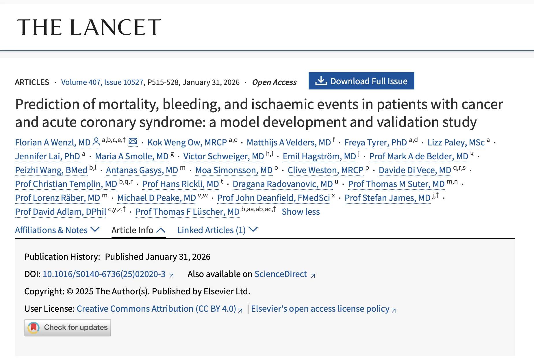 Authors: Florian A Wenzl, Kok Weng Ow, Matthijs A Velders, Freya Tyrer, Lizz Paley, Jennifer Lai, Maria A Smolle, Victor Schweiger, Emil Hagström, Mark A de Belder, Peizhi Wang, Antanas Gasys, Moa Simonsson, Clive Weston, Davide Di Vece, Christian Templin, Hans Rickli, Dragana Radovanovic, Thomas M Suter, Lorenz Räber, Michael D Peake, John Deanfield, Stefan James, David Adlam, Thomas F Lüscher