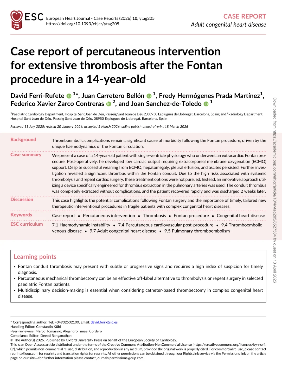 David Ferri, Researcher in the Cardiovascular Diseases and Child Development Group at Sant Joan de Déu Research Foundation, shared on LinkedIn about a recent article he and his colleagues co-authored, adding: