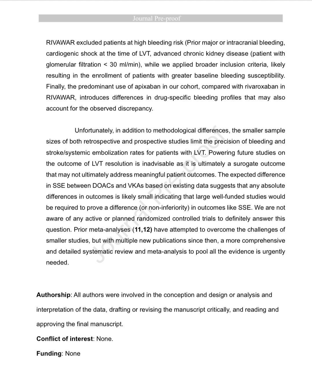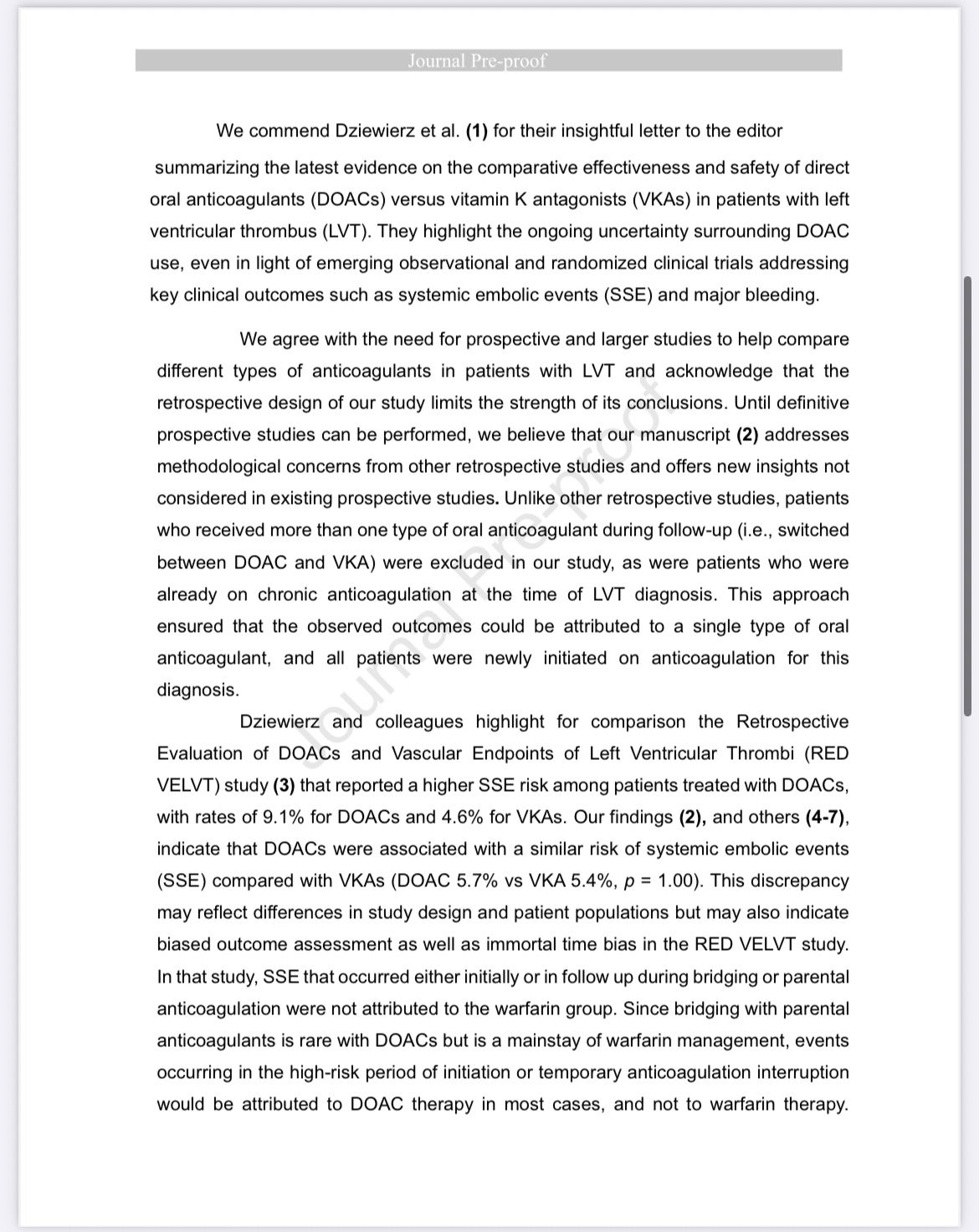 “See our Responce : “DOACs for Left Ventricular Thrombus: Persistent Equipoise Despite New Observational and Randomized Data”