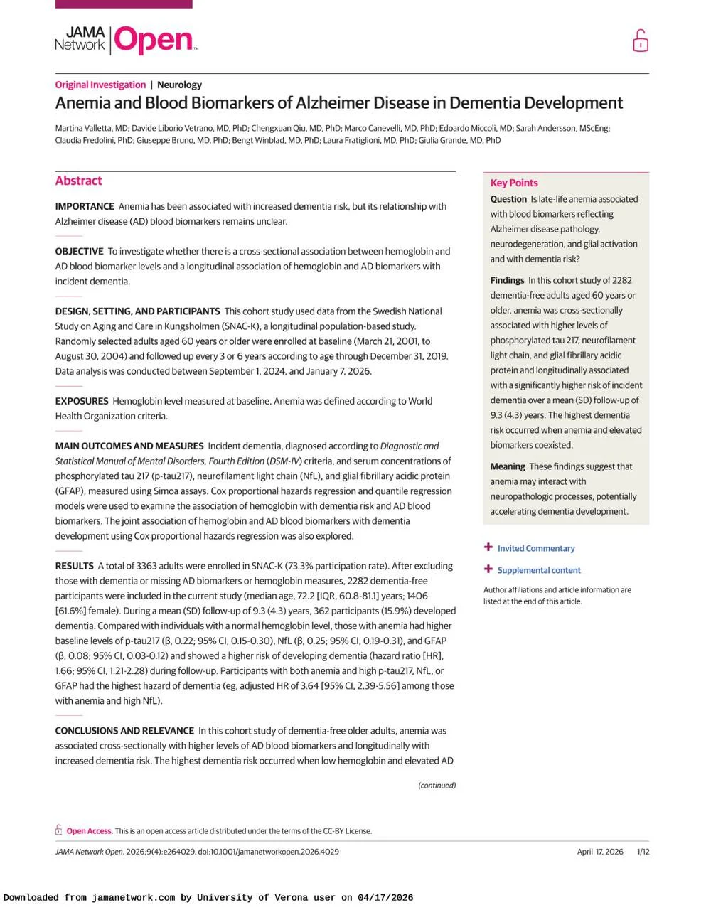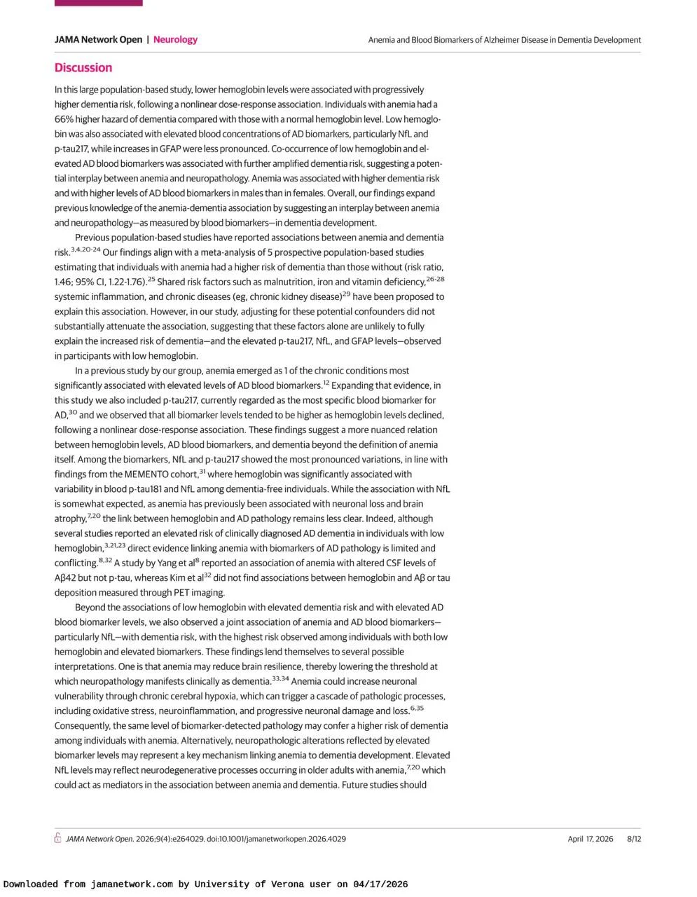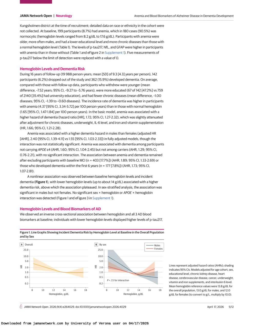 Domenico Girelli: Anemia Is Linked to Higher Dementia Risk and Elevated Alzheimer’s Disease Biomarkers