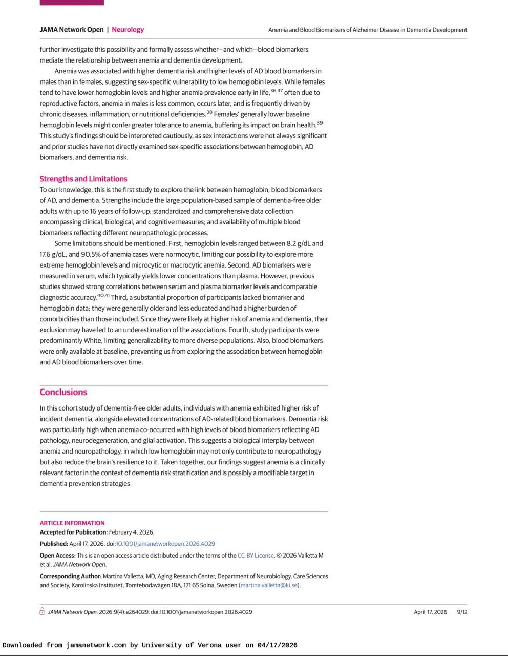 Domenico Girelli, Full Professor of Internal Medicine and Director of Medicine at the University of Verona, shared a post on LinkedIn about a recent article by Martina Valleta et al. published in JAMA Network Open, adding: