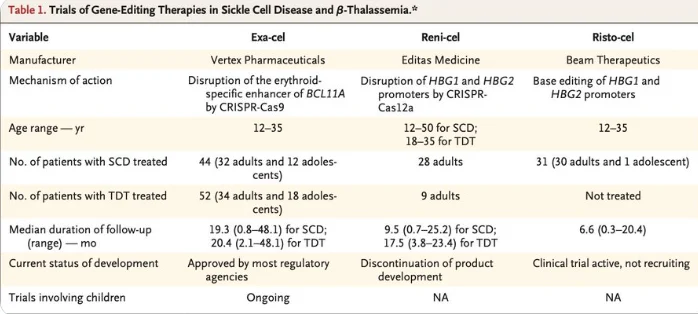 “3 new trial results for genome editing of sickle cell disease and β-thalassemia.”