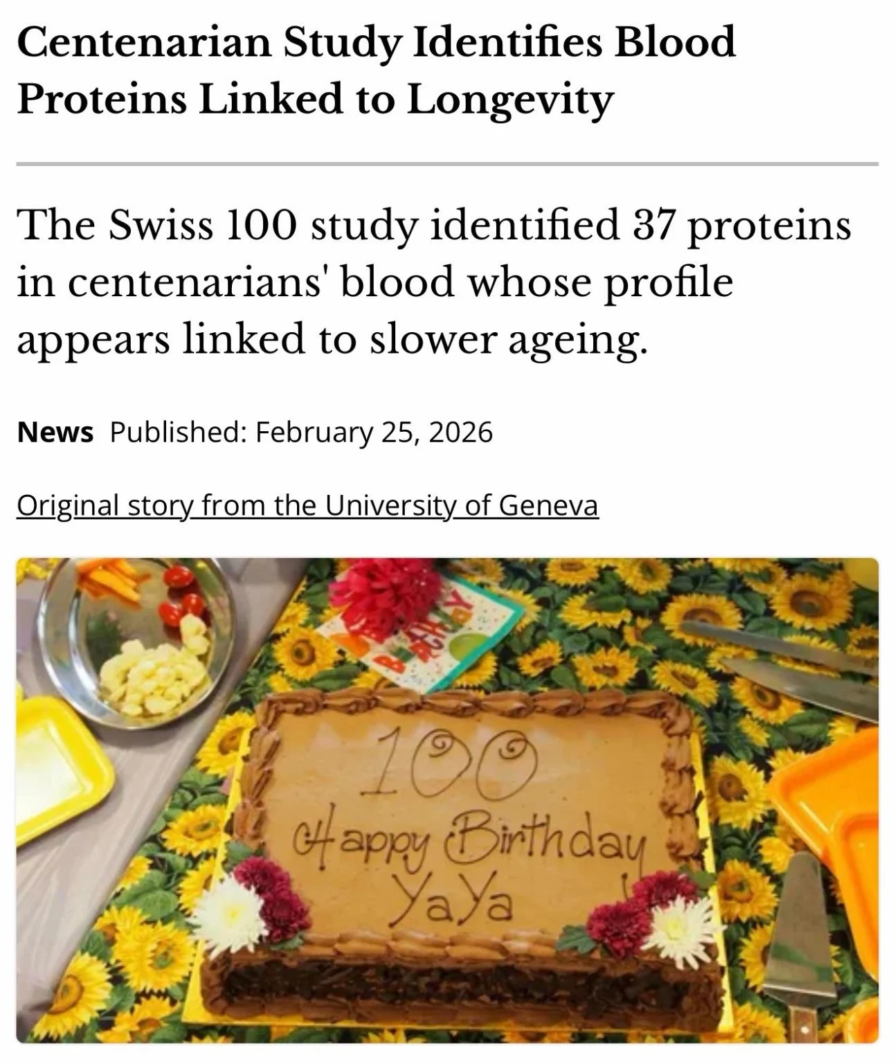 The Swiss 100 study identified 37 proteins in centenarians’ blood whose profile appears linked to slower ageing.