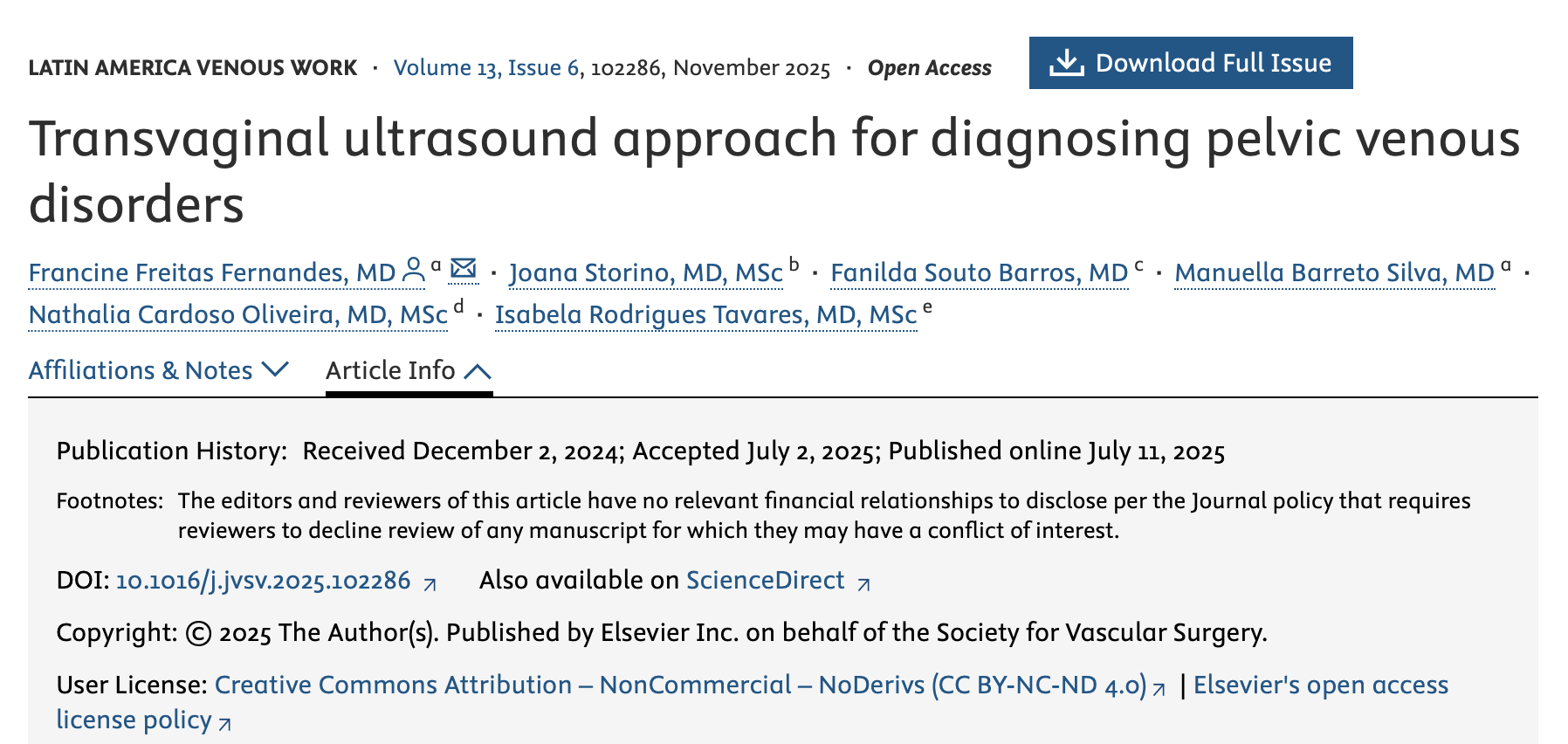 When feasible, transvaginal ultrasonography should be part of routine vascular ultrasound practice in patients with suspected pelvic venous.