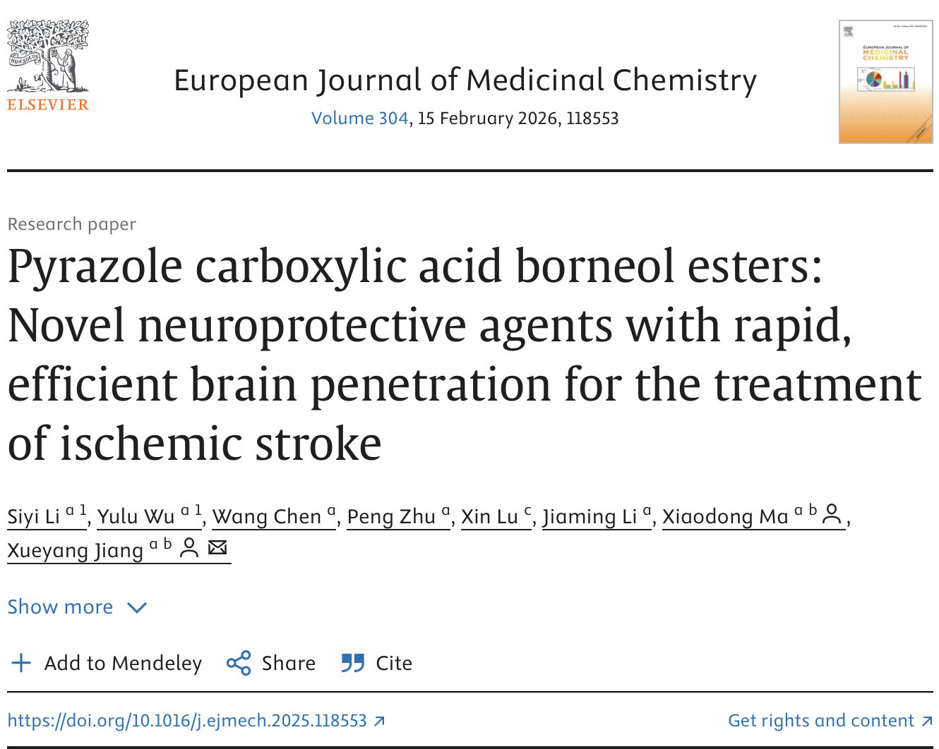 Article: Pyrazole carboxylic acid borneol esters: Novel neuroprotective agents with rapid, efficient brain penetration for the treatment of ischemic stroke