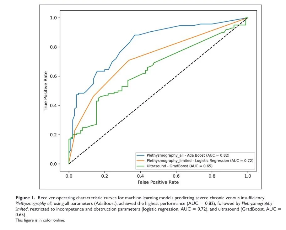 In machine learning models PG outperformed US parameters in predicting severe CVI (AUROC: 0.82 vs 0.65).