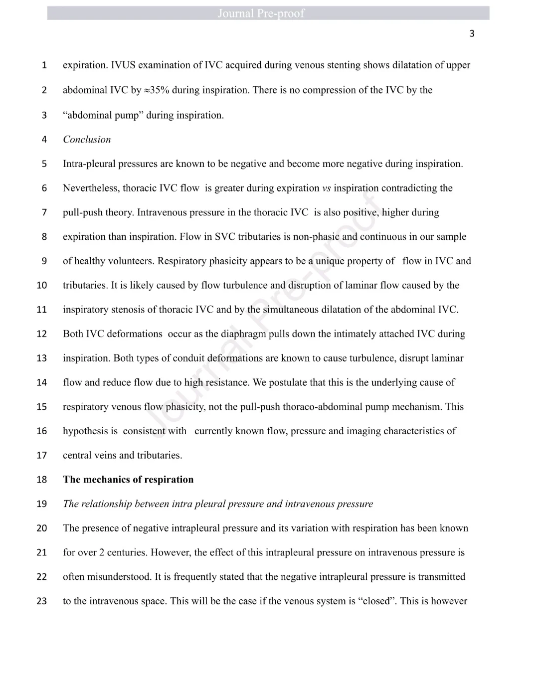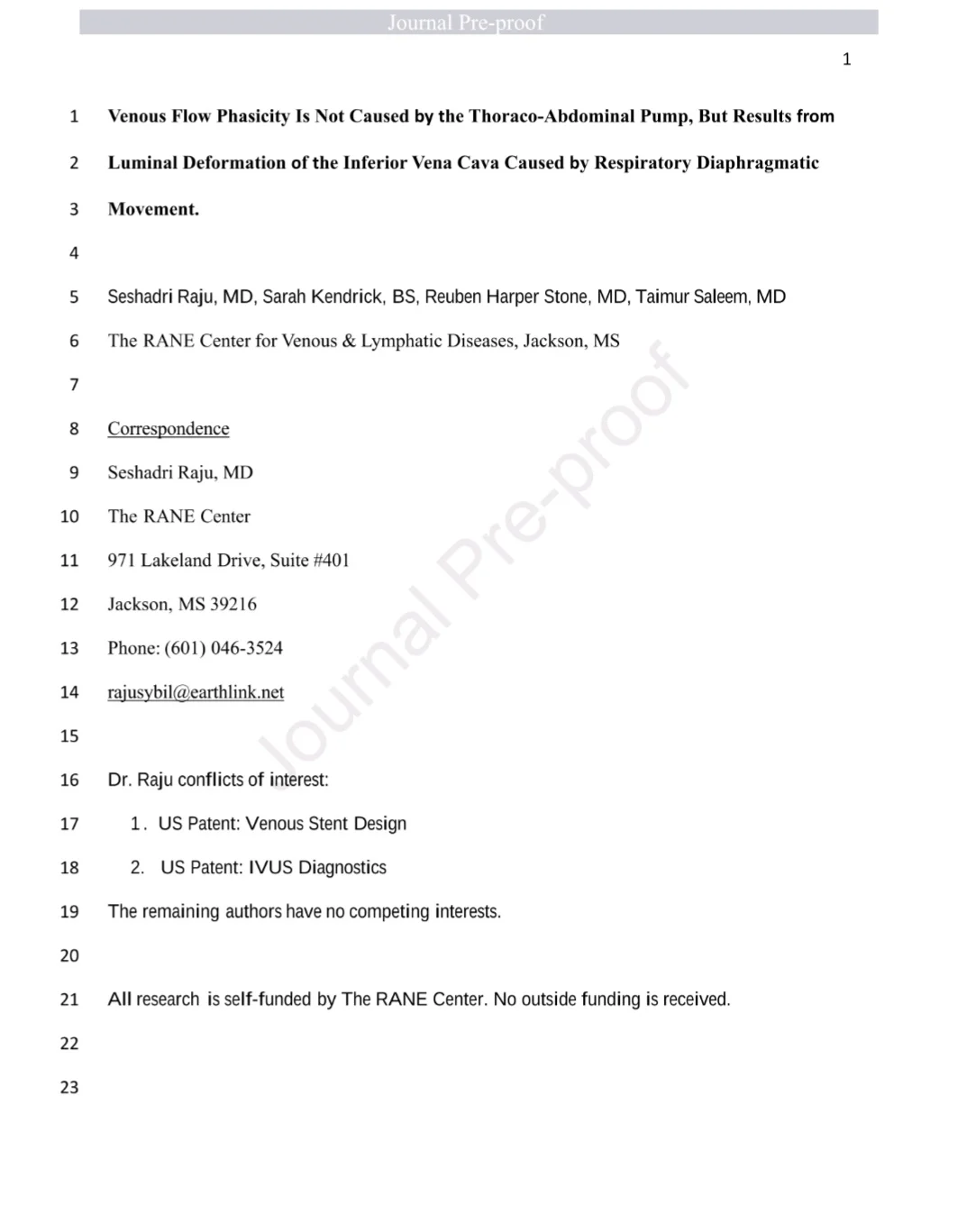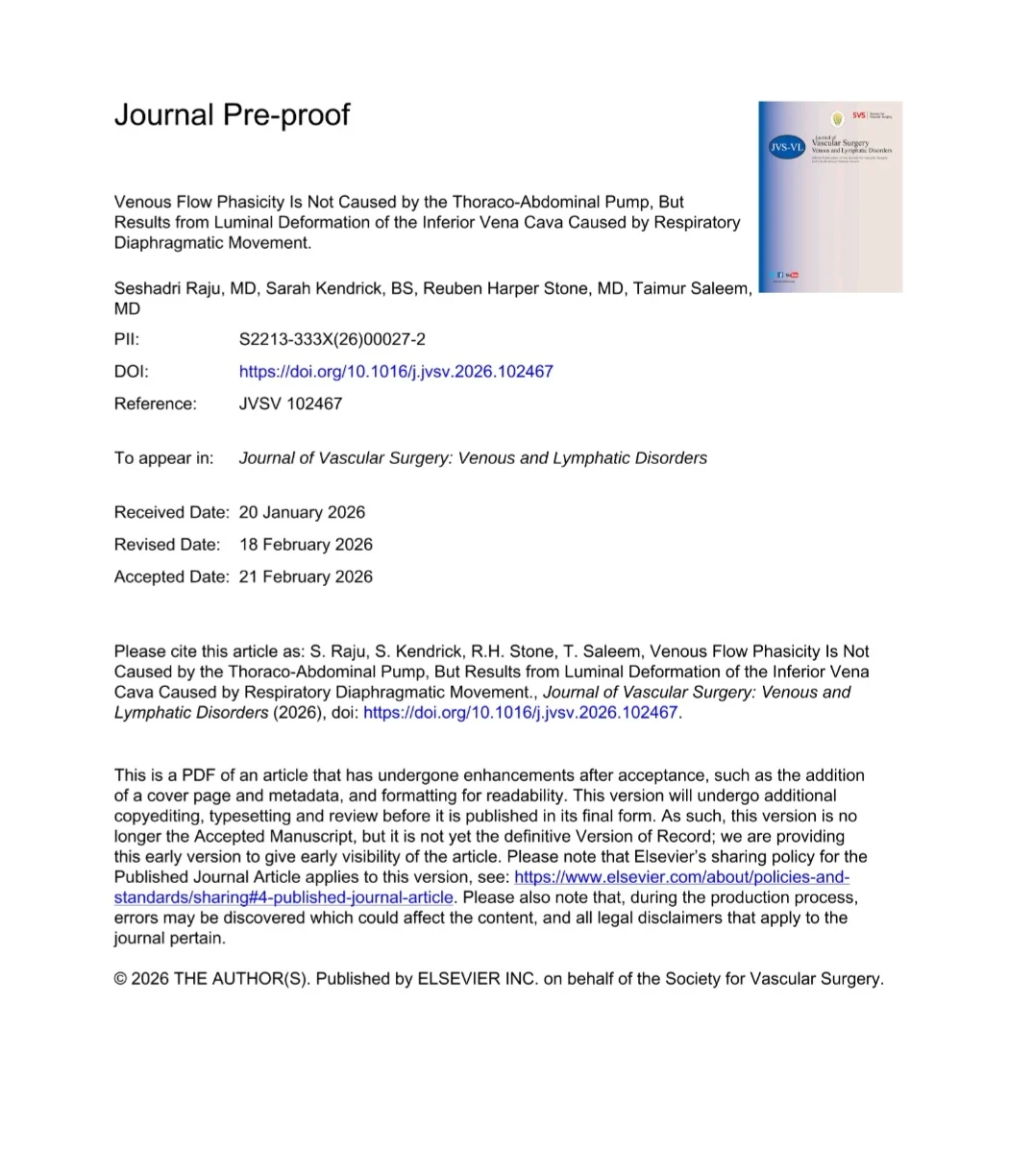 Title: Venous Flow Phasicity Is Not Caused by the Thoraco-Abdominal Pump, But Results from Luminal Deformation of the Inferior Vena Cava Caused by Respiratory Diaphragmatic Movement.