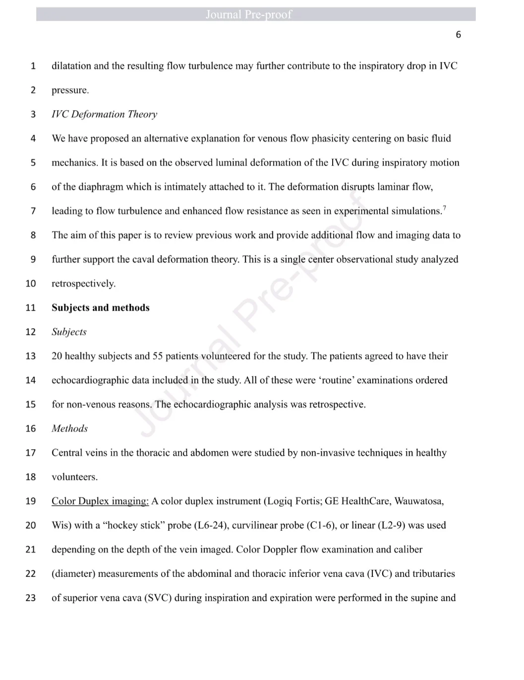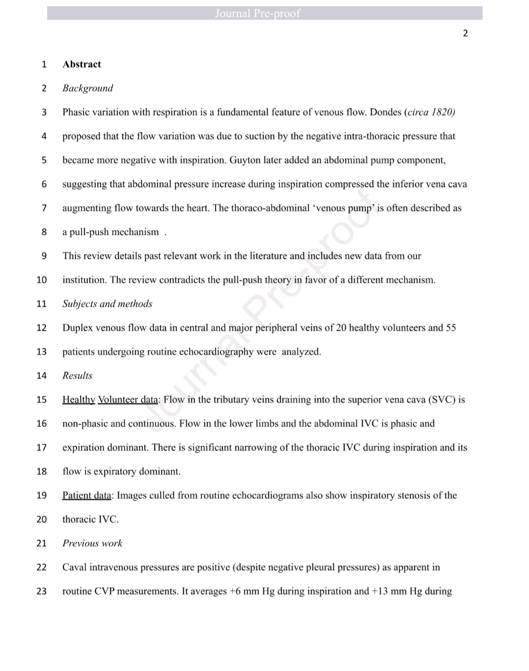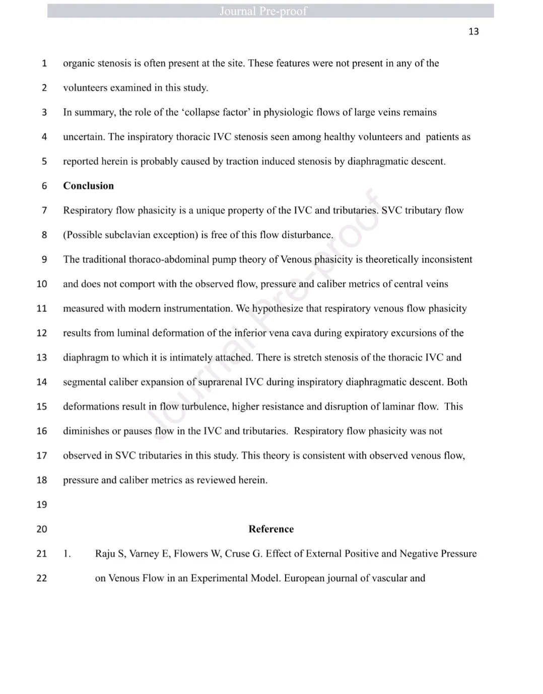Title: Venous Flow Phasicity Is Not Caused by the Thoraco-Abdominal Pump, But Results from Luminal Deformation of the Inferior Vena Cava Caused by Respiratory Diaphragmatic Movement.