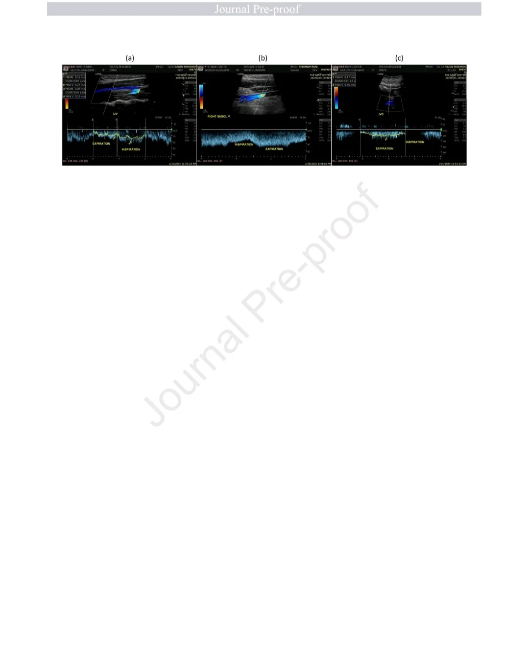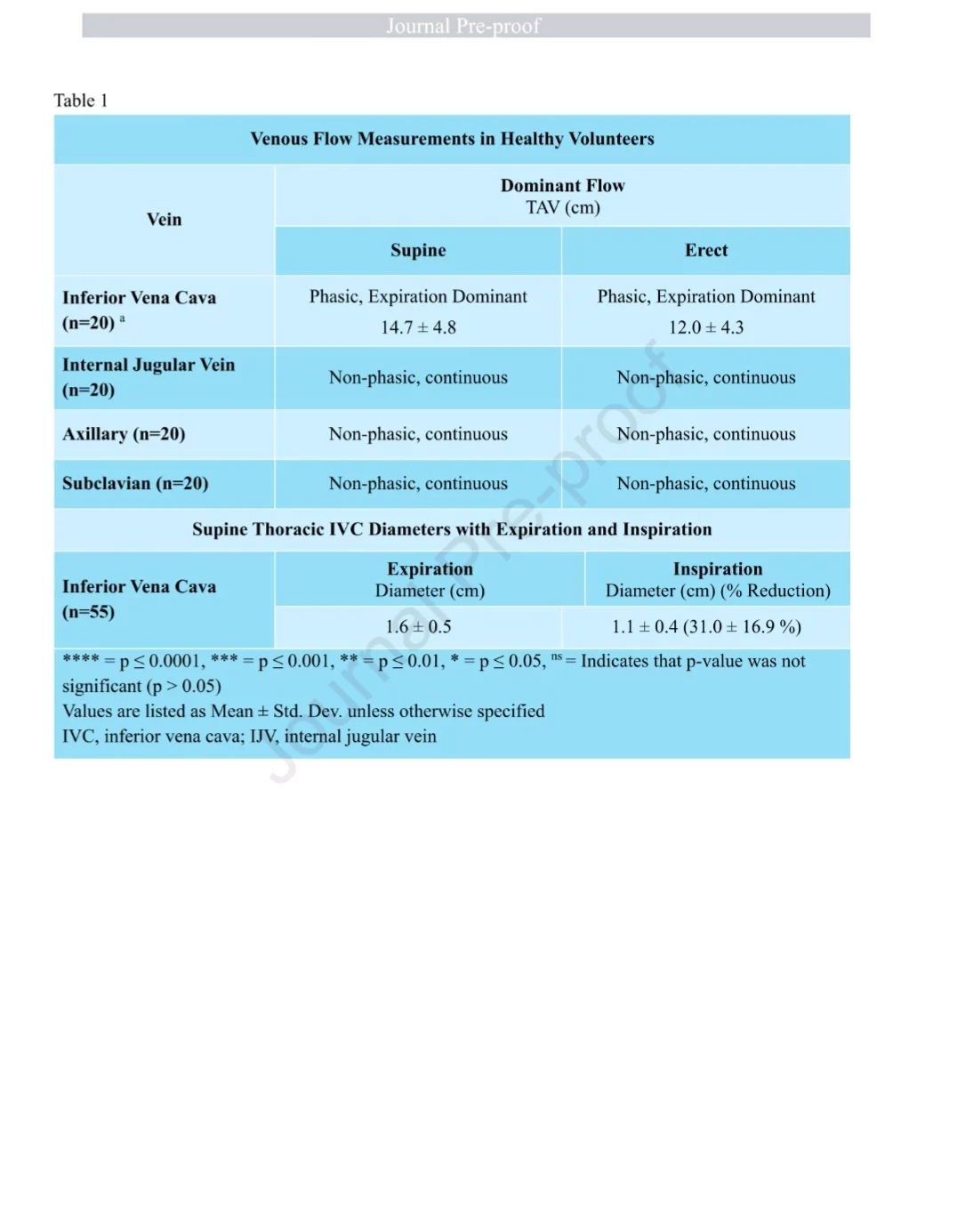 - Inferior vena cava territory (IVC and lower limb tributaries) shows expiratory‑dominant phasic flow, often with minimal or absent inspiratory flow