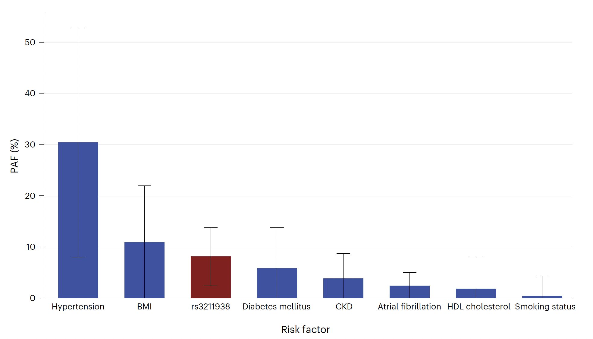 This single CD36 variant explains 8% of DCM in African ancestry populations — a greater impact on DCM than diabetes or chronic kidney disease — and accounts for 20% of the excess DCM risk compared with European ancestry individuals.