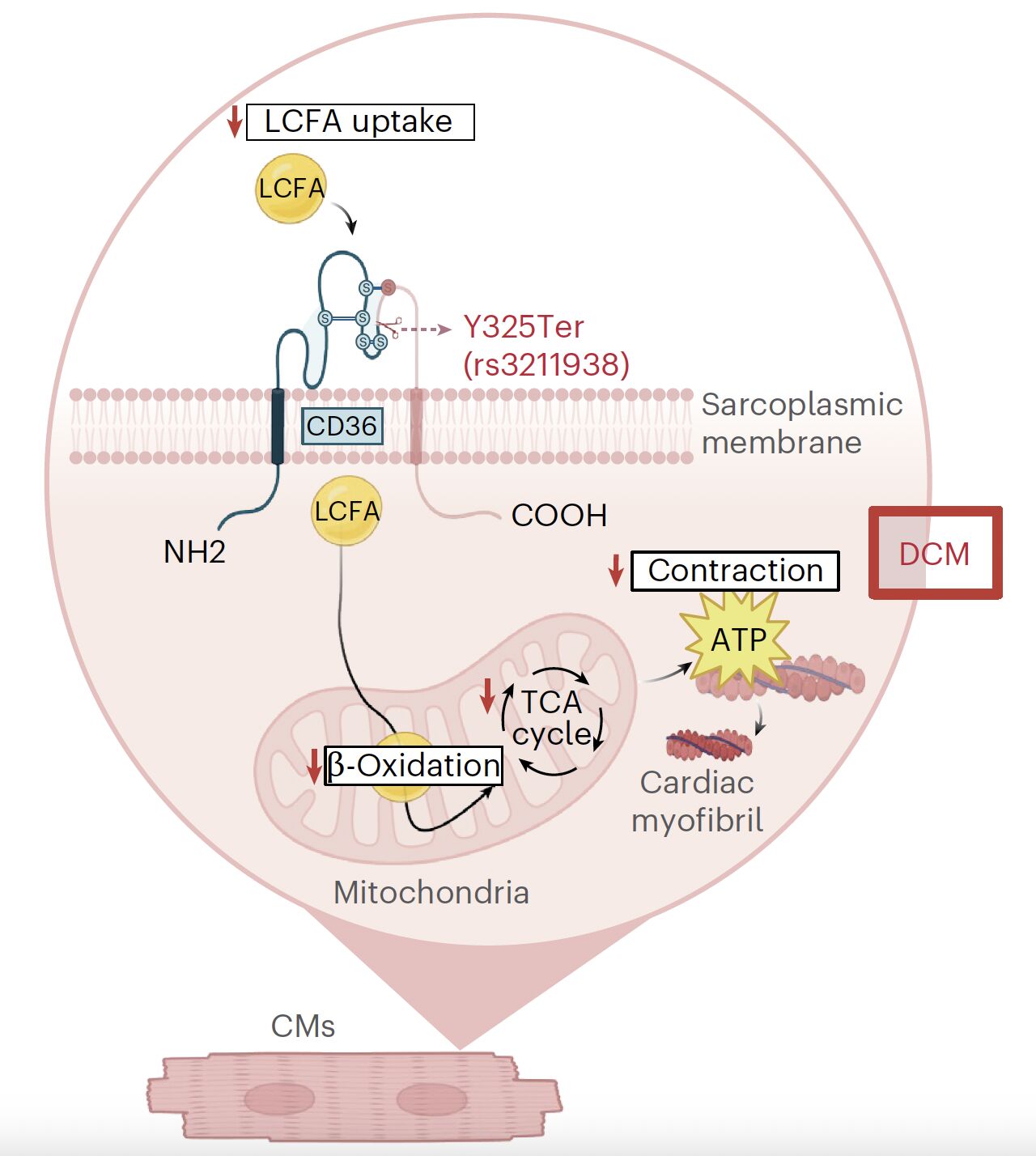 Our new paper in Nature Genetics identifies a key contributor: **a common loss-of-function variant in the gene CD36, specific to individuals of African ancestry, that increases risk of DCM.**