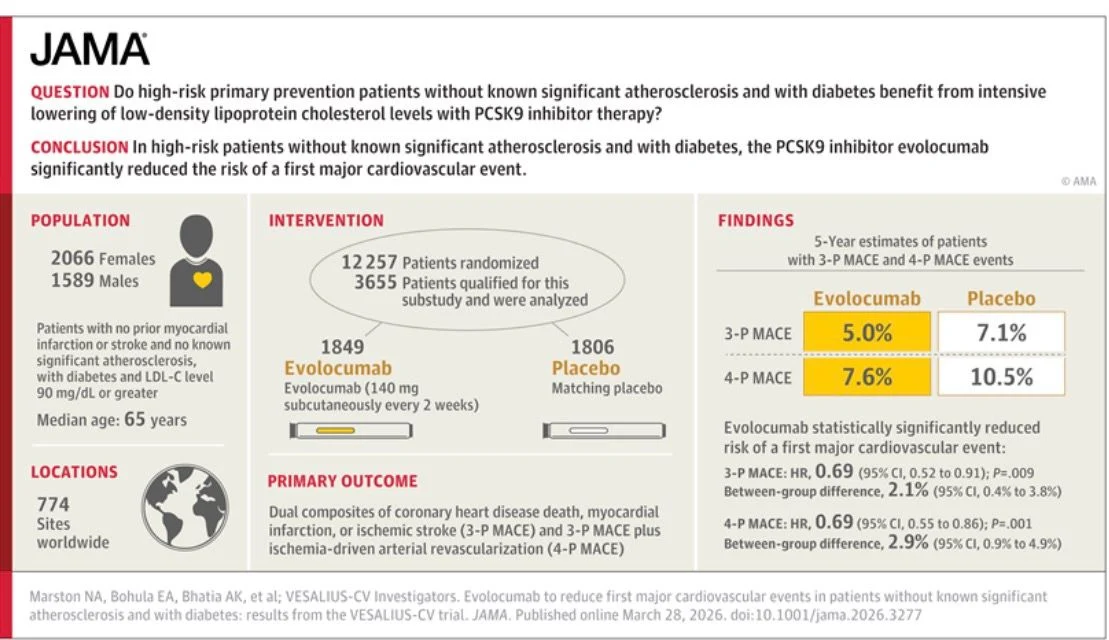 Title: Evolocumab to Reduce First Major Cardiovascular Events in Patients Without Known Significant Atherosclerosis and With Diabetes Results From the VESALIUS-CV Trial