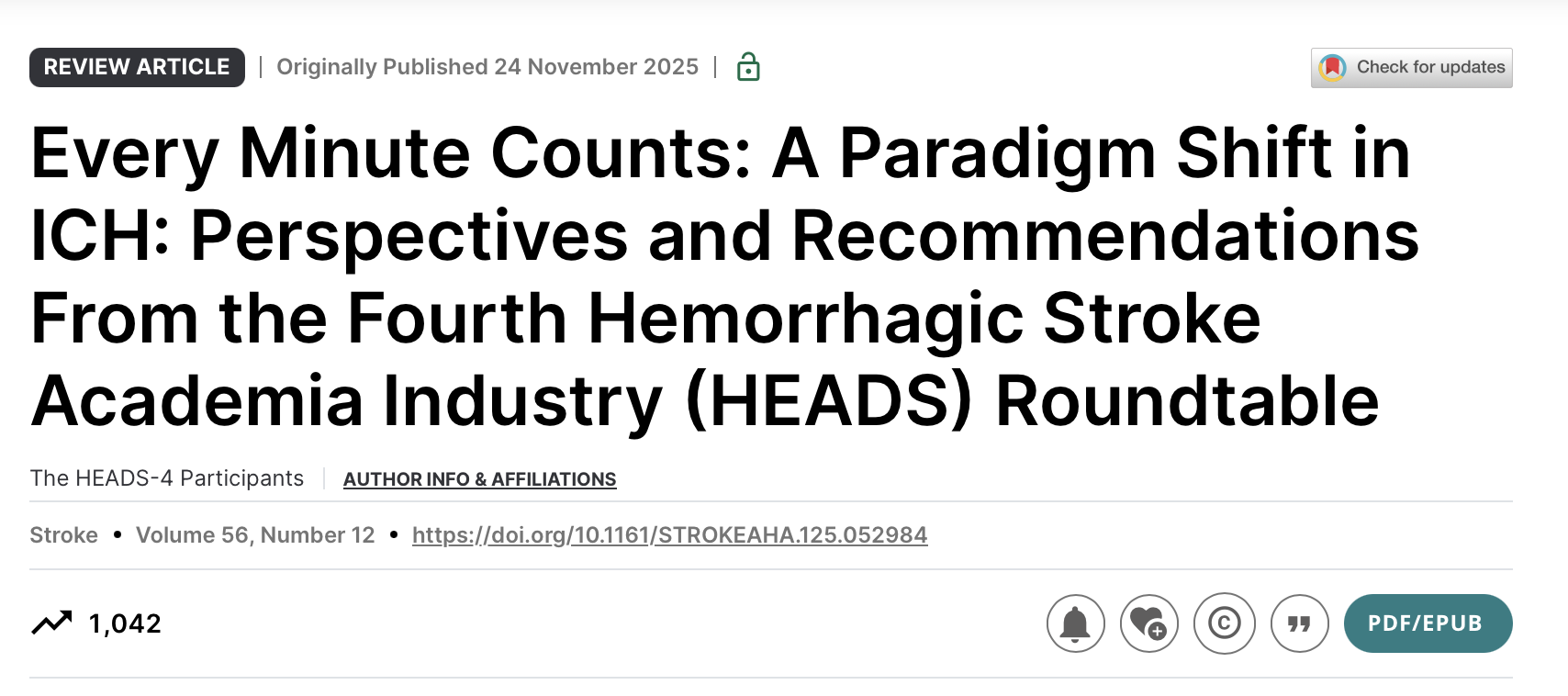 ”Proud to share our new publication in Stroke: “Every Minute Counts: A Paradigm Shift in ICH — Recommendations From the HEADS-4 Roundtable.”
