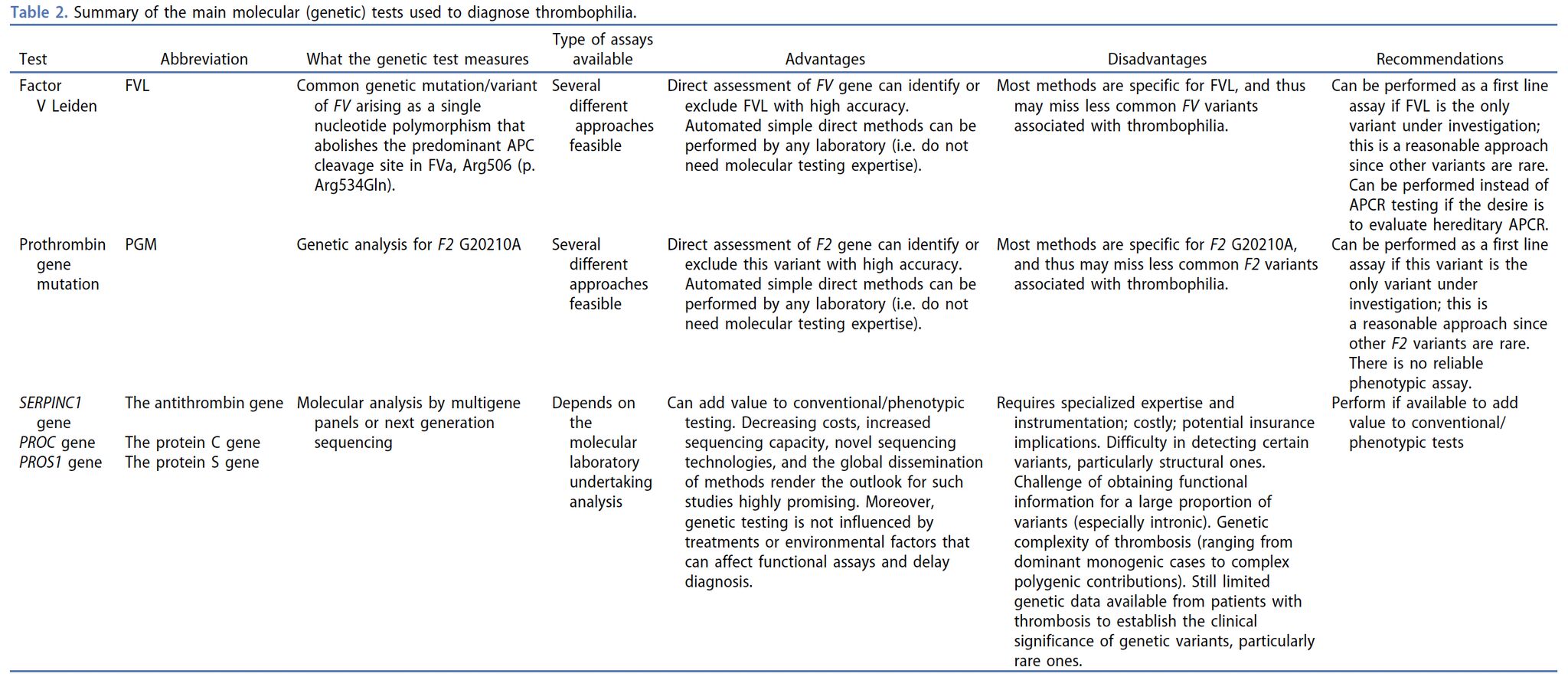 “A second useful summary table, this one of the main molecular (genetic) tests used to diagnose thrombophilia.. From our recent Editorial ‘Diagnosing thrombophilia: the case for genetic or functional testing?’