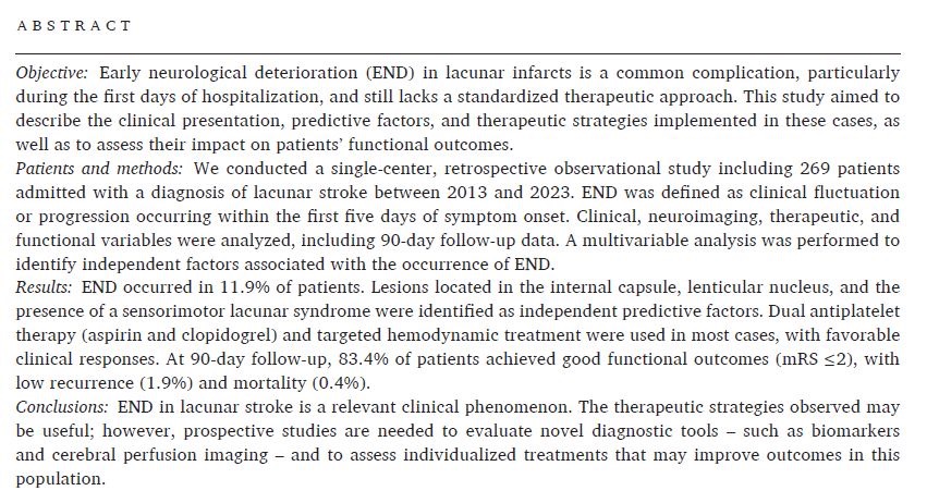 “Treatment of Early Neurological Deterioration in Lacunar Stroke” (in Medicina Clínica).