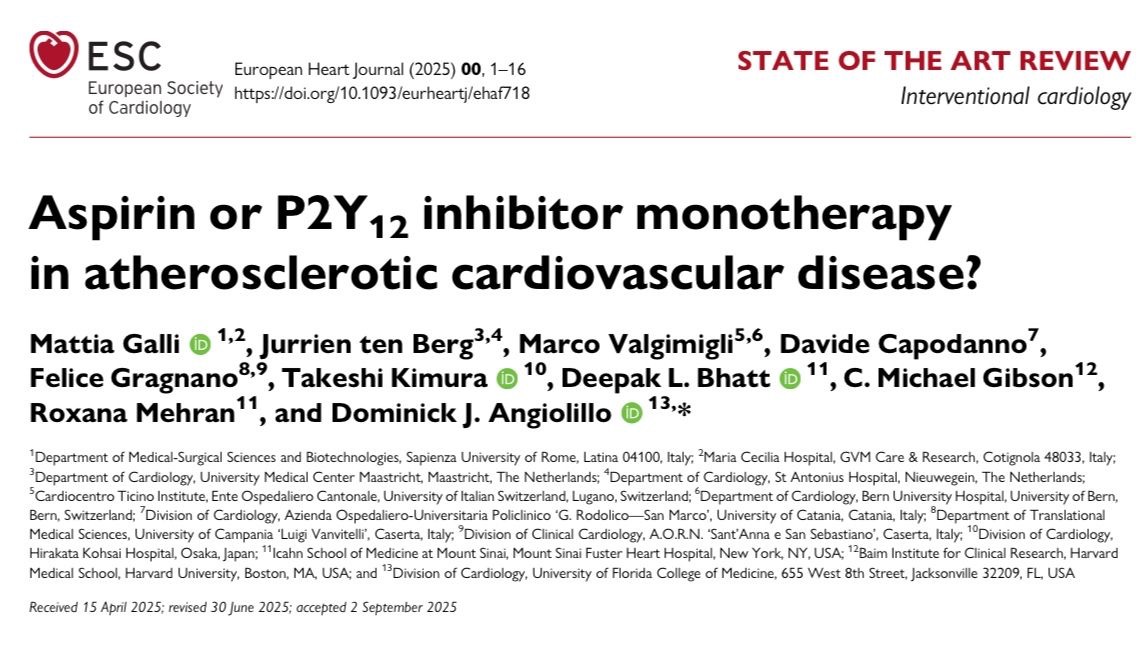 Mattia Galli on The Choice in ASCVD: Aspirin or P2Y12 Inhibitor Monotherapy?