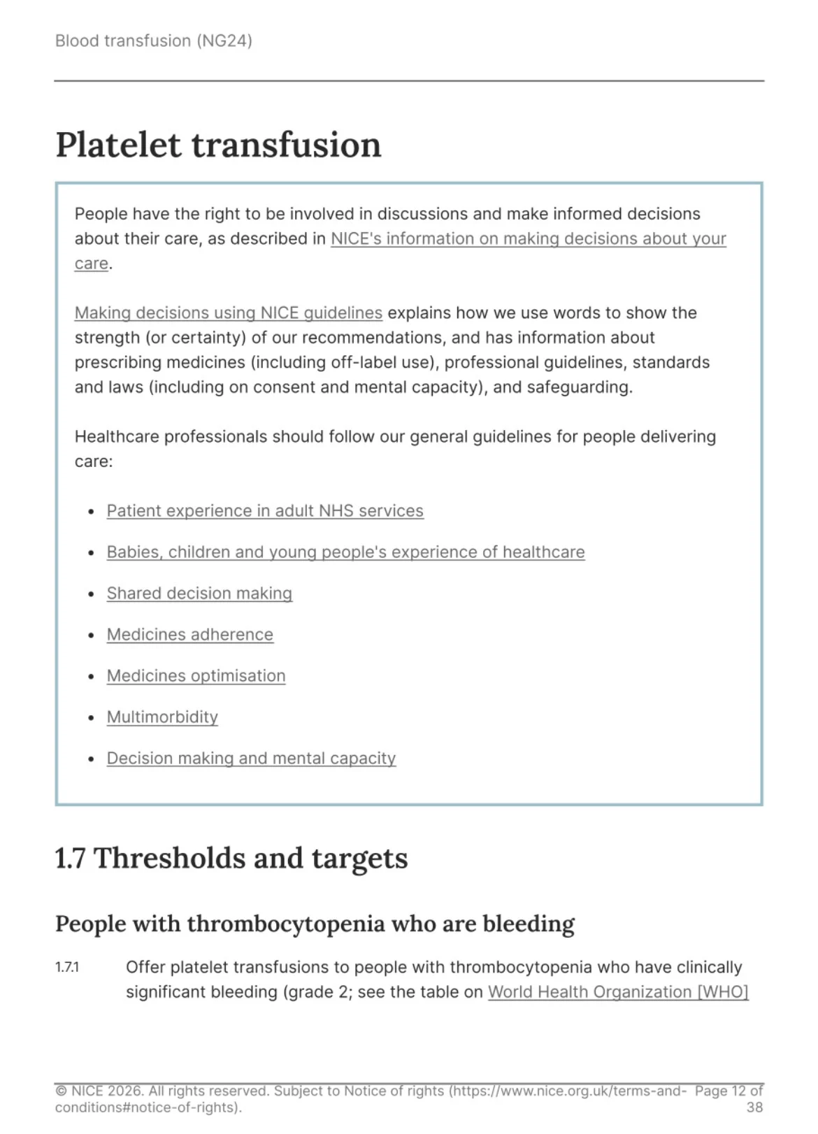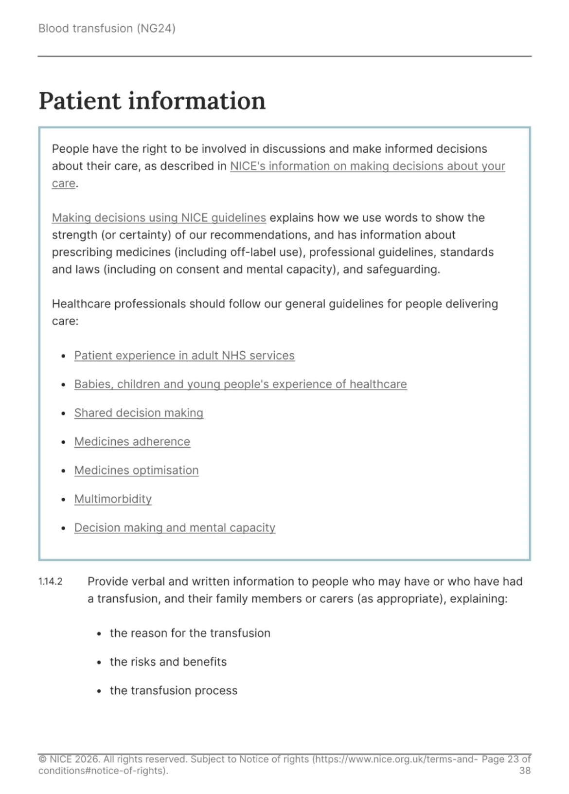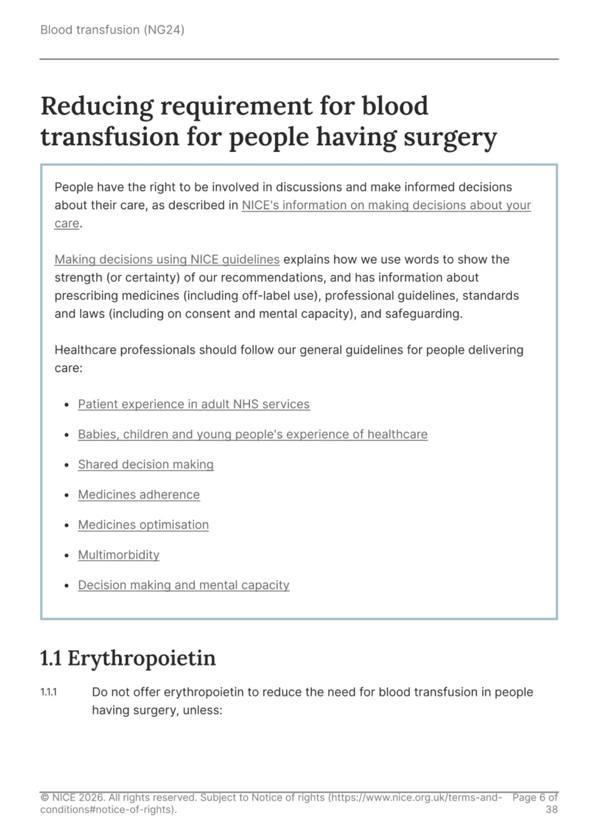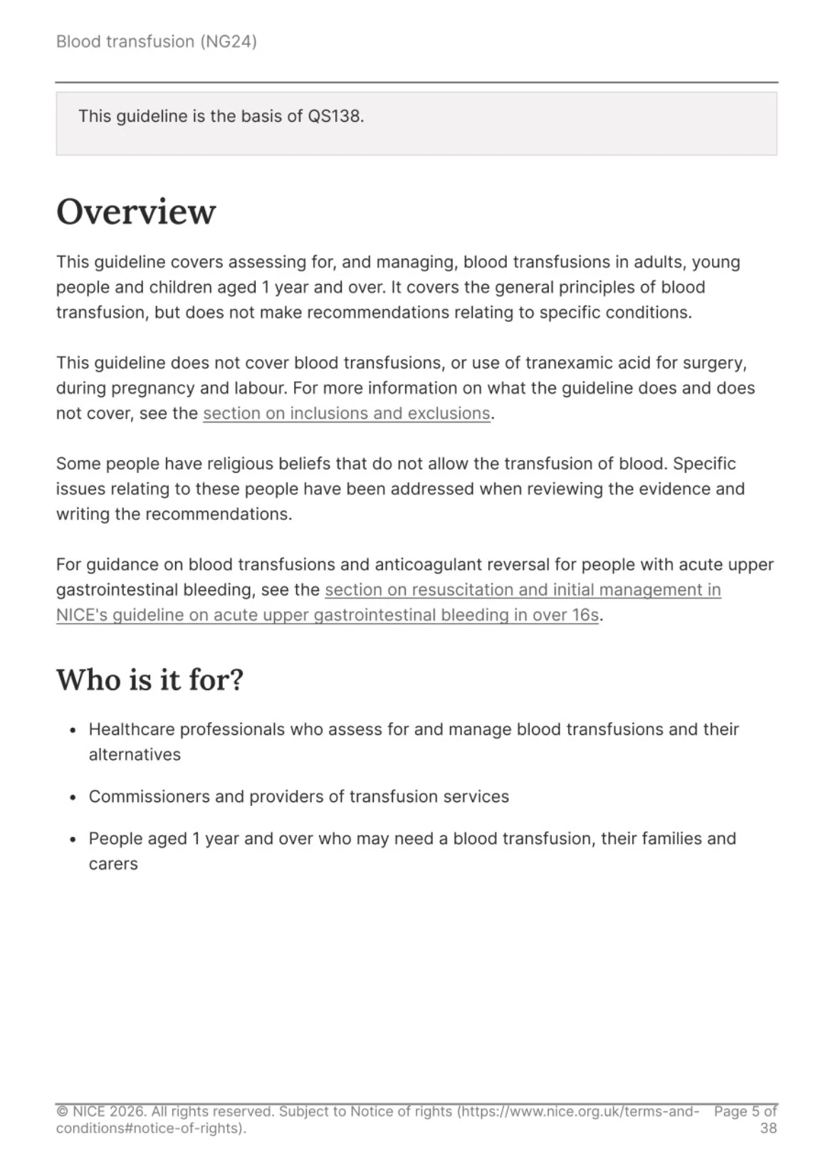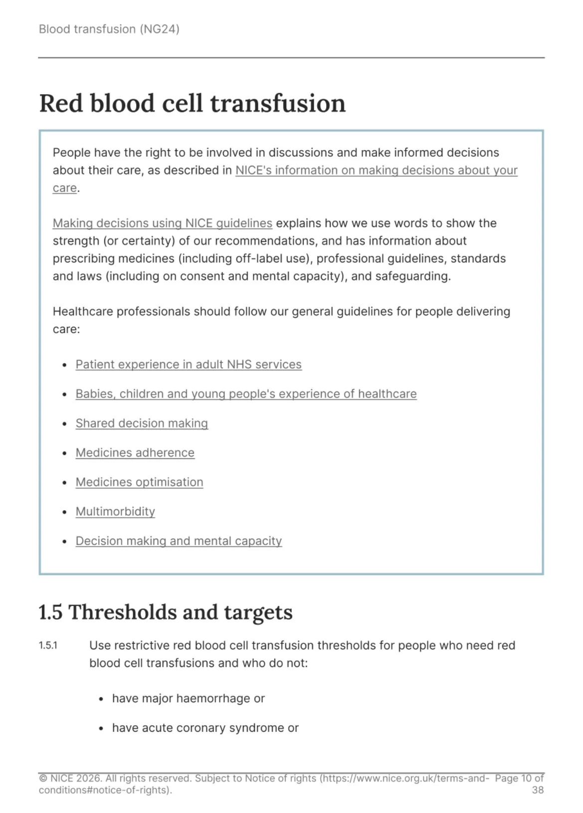 “Blood Transfusion: NICE Guideline (NG24, Updated 2026):