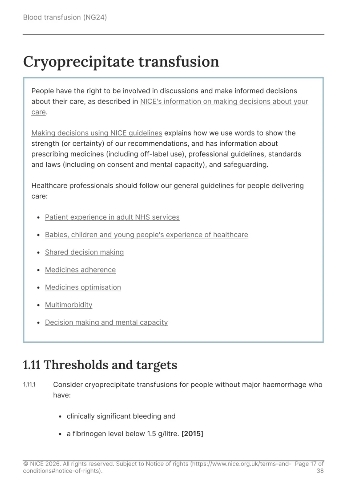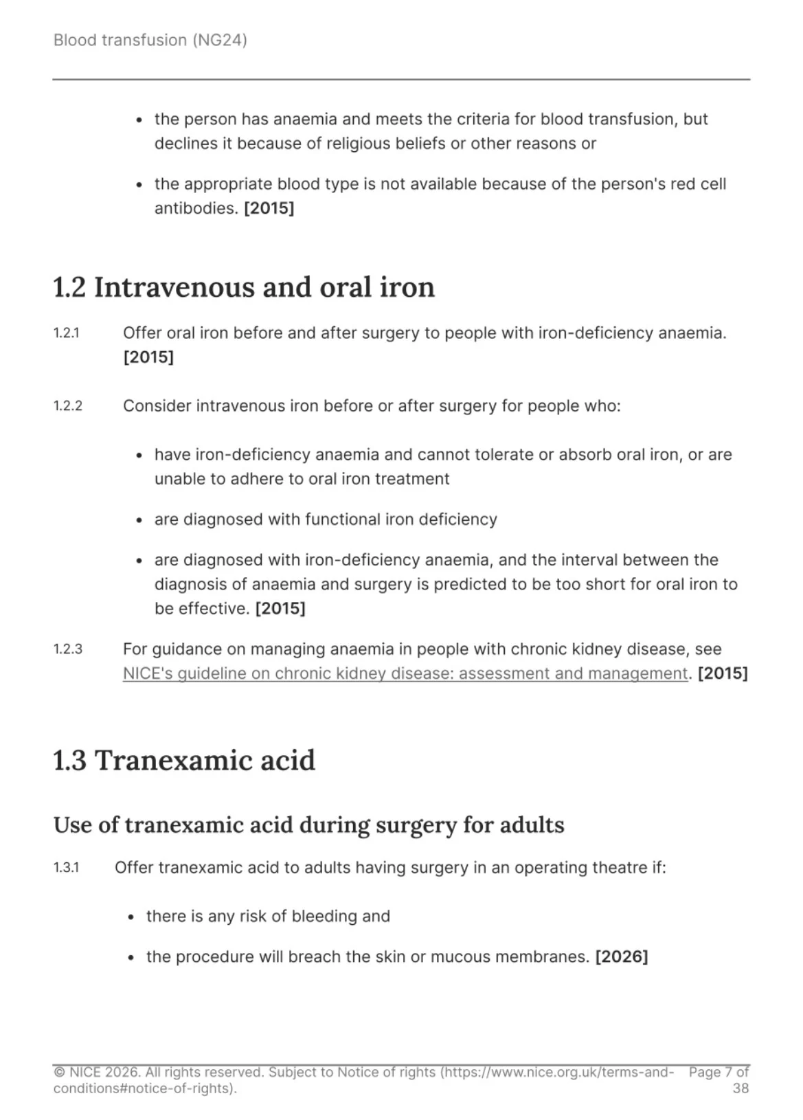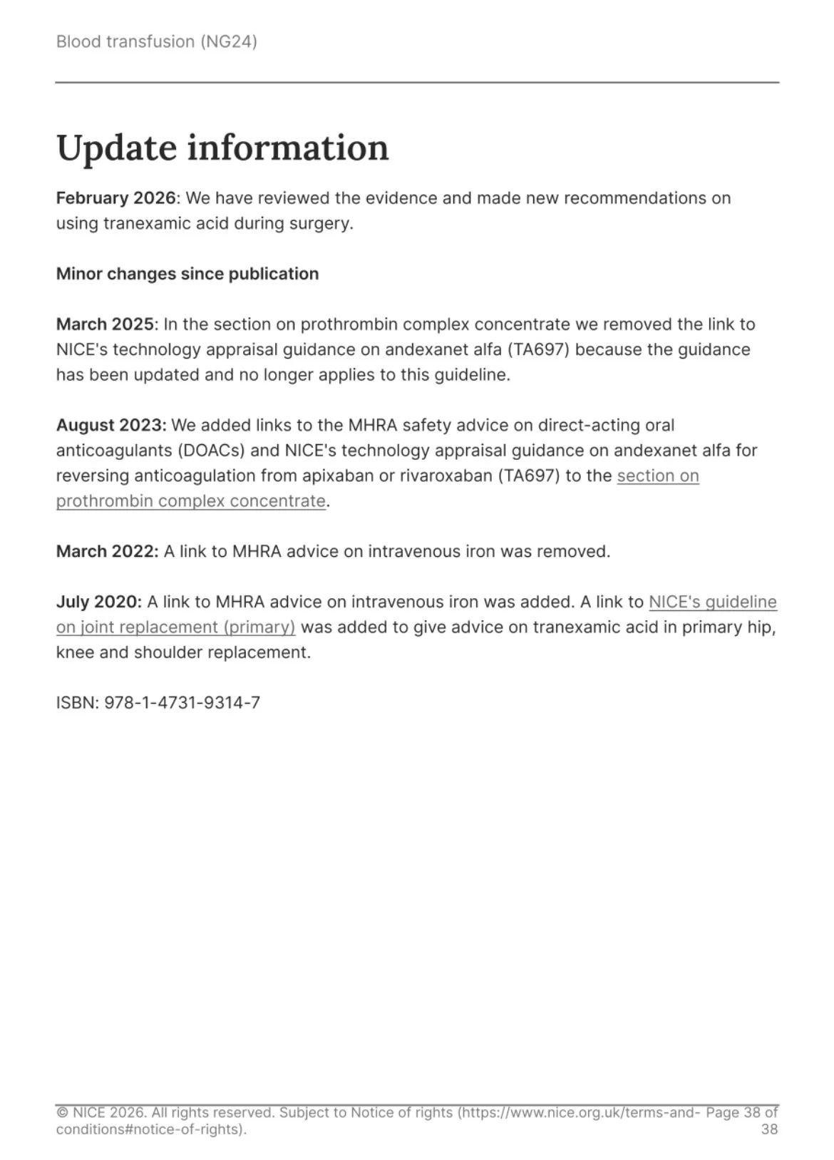 NICE Blood Transfusion Guideline (NG24, Updated February 2026)”