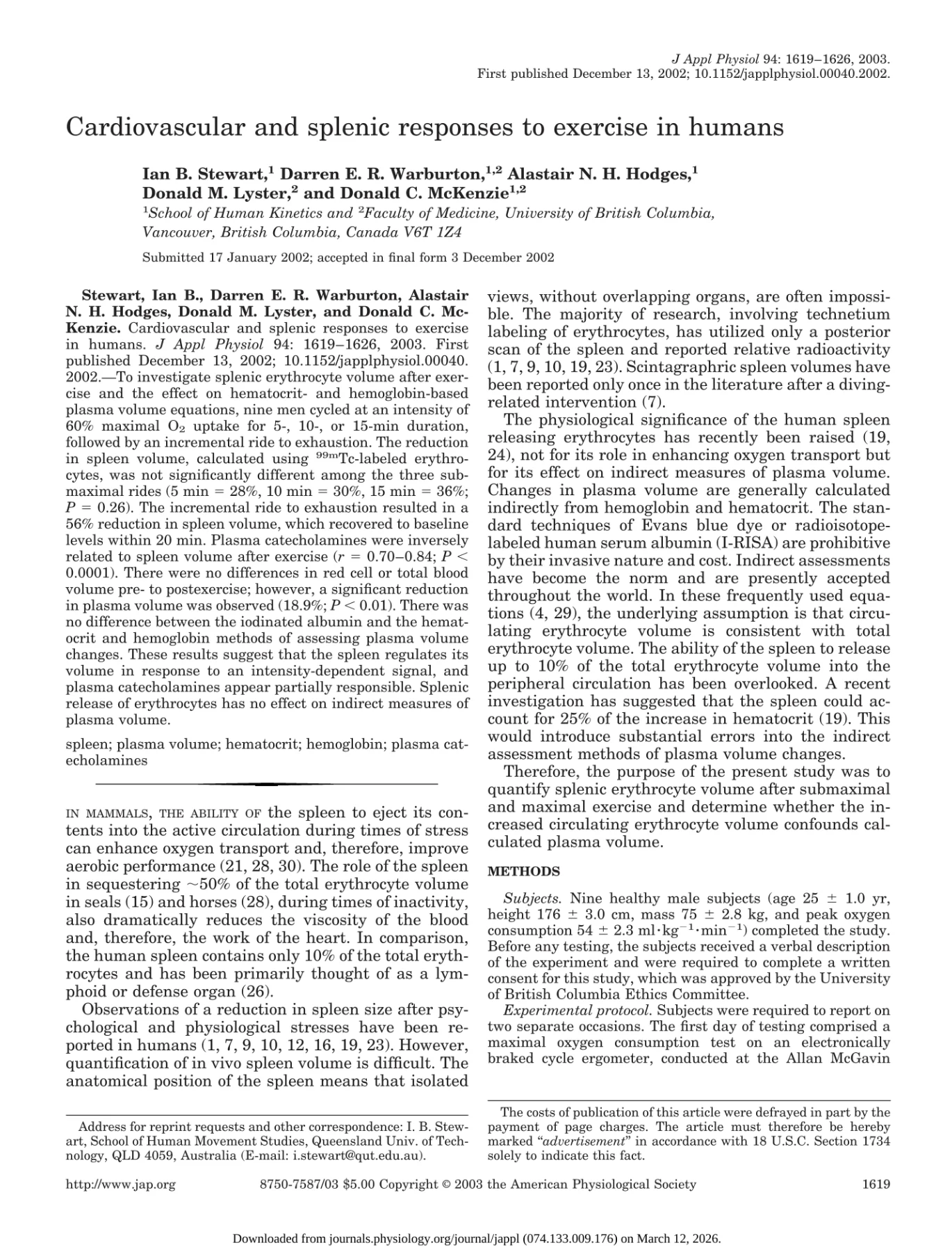 Authors: Ian B. Stewart, Darren E. R. Warburton, Alastair N. H. Hodges, Donald M. Lyster, Donald C. McKenzie