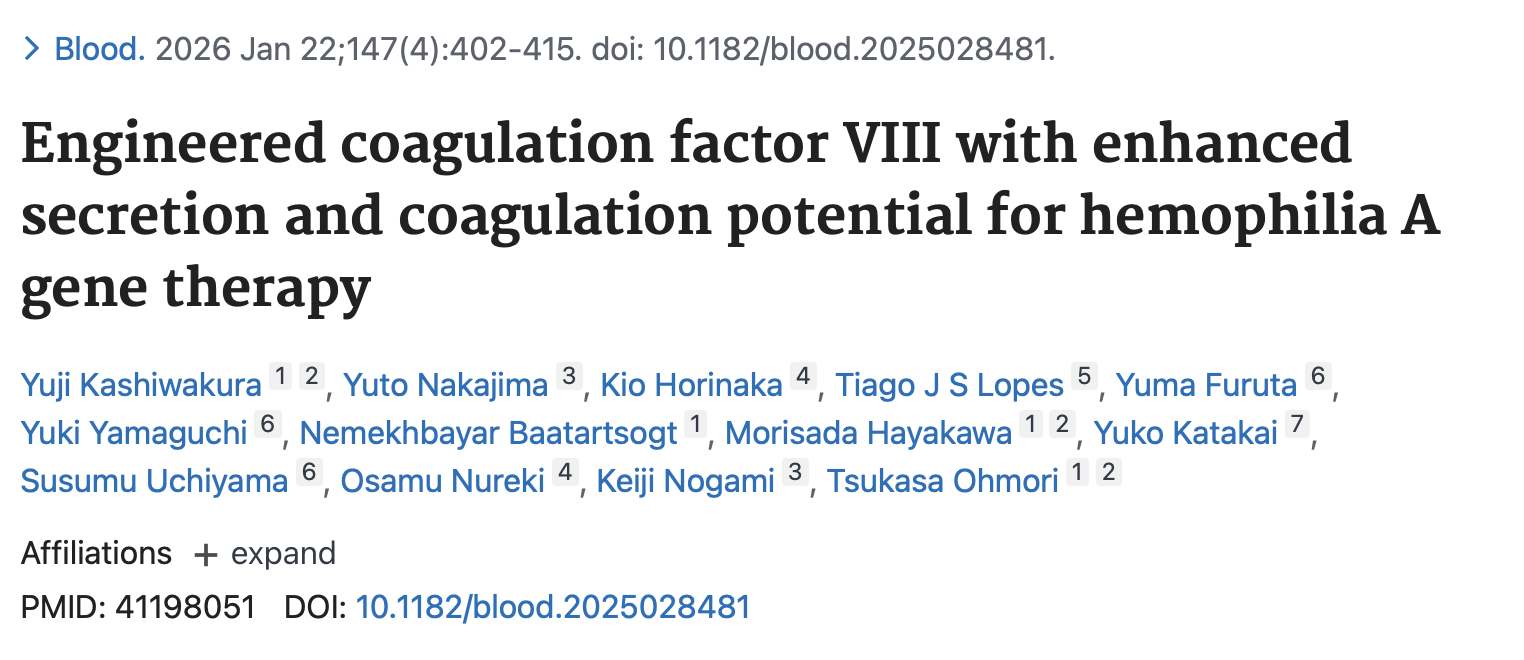 Article: Engineered coagulation factor VIII with enhanced secretion and coagulation potential for hemophilia A gene therapy