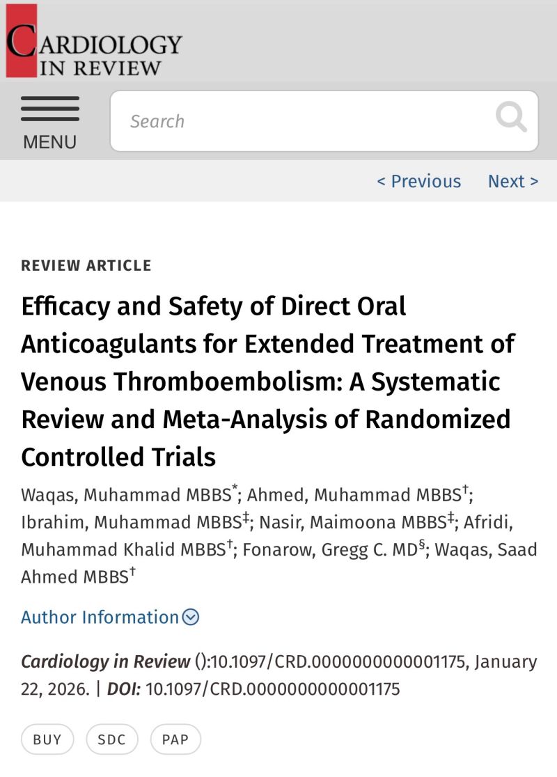 ”Excited to co-author this amazing systematic review and meta-analysis entitled: Efficacy and Safety of Direct Oral Anticoagulants for Extended Treatment of Venous Thromboembolism.