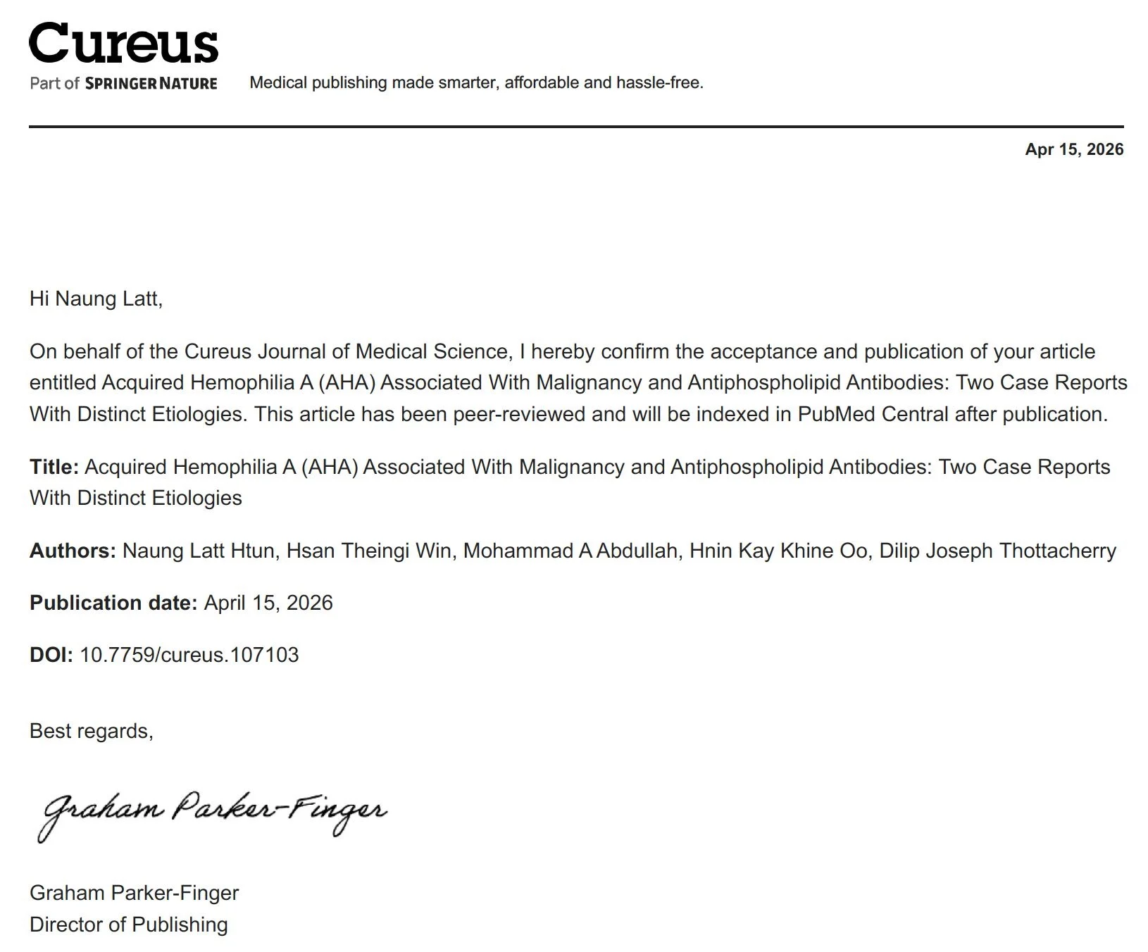 Naung Latt Htun: High Clinical Suspicion in Acquired Hemophilia A is Essential