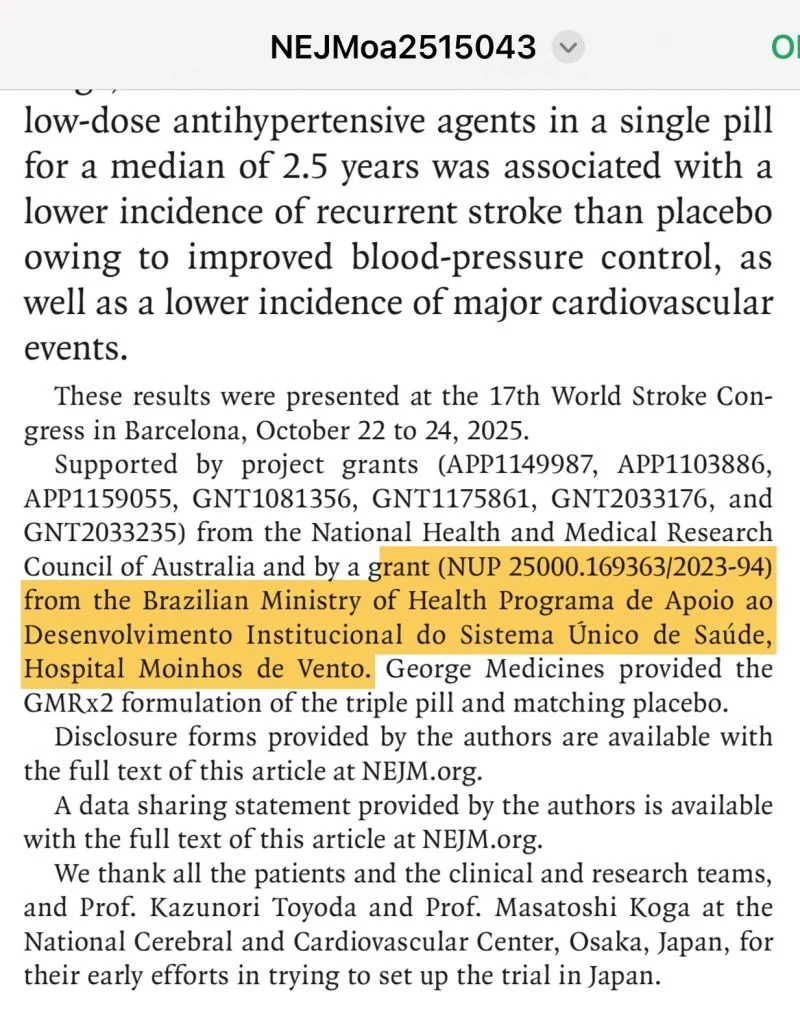 My sincere congratulations to Professor Craig Anderson for his outstanding leadership in bringing this important trial to completion and publication, and to Professor Sheila Cristina Ouriques Martins for her remarkable leadership and for helping ensure strong Brazilian engagement in a study of such global significance.