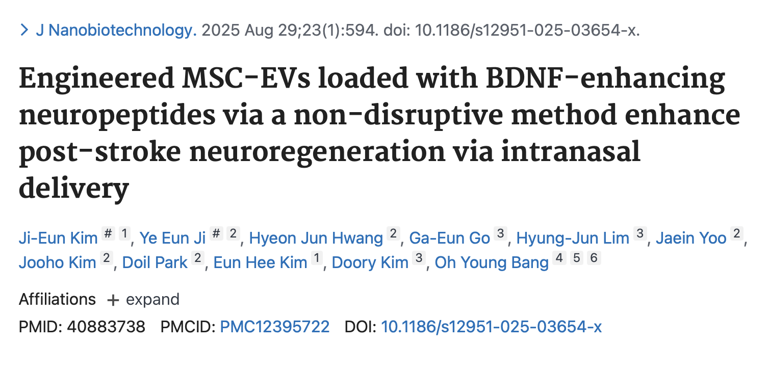 Article: Engineered MSC-EVs loaded with BDNF-enhancing neuropeptides via a non-disruptive method enhance post-stroke neuroregeneration via intranasal delivery