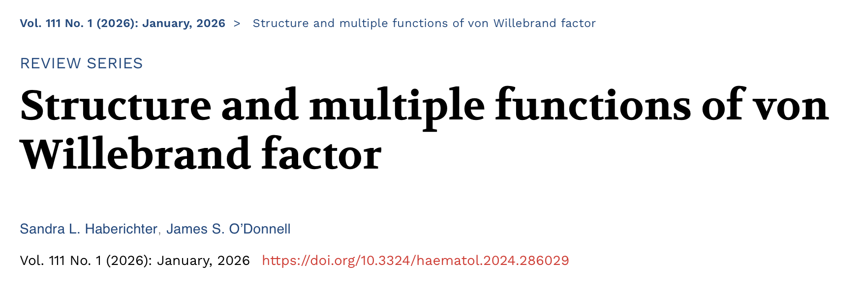 ”Review series on von Willebrand disease: don’t miss the unique opportunity to deepen your current understanding of the biosynthesis and structure of von Willebrand factor, mechanisms regulating its critical role in normal hemostasis, and evidence of its potential novel biological functions extending beyond coagulation.”