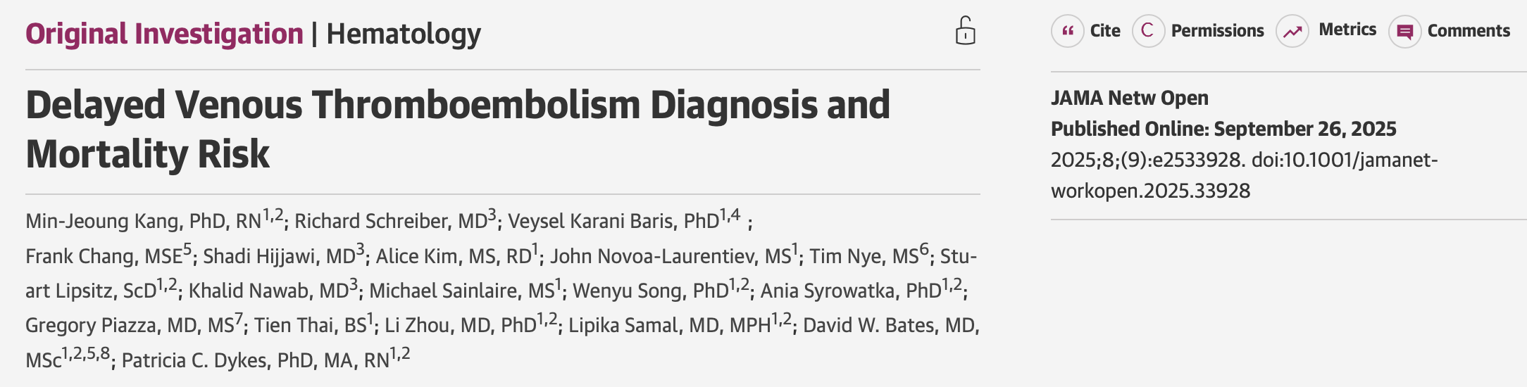 ”New Publication in JAMA Network Open: Delays in diagnosing venous thromboembolism (VTE) are alarmingly common and deadly.