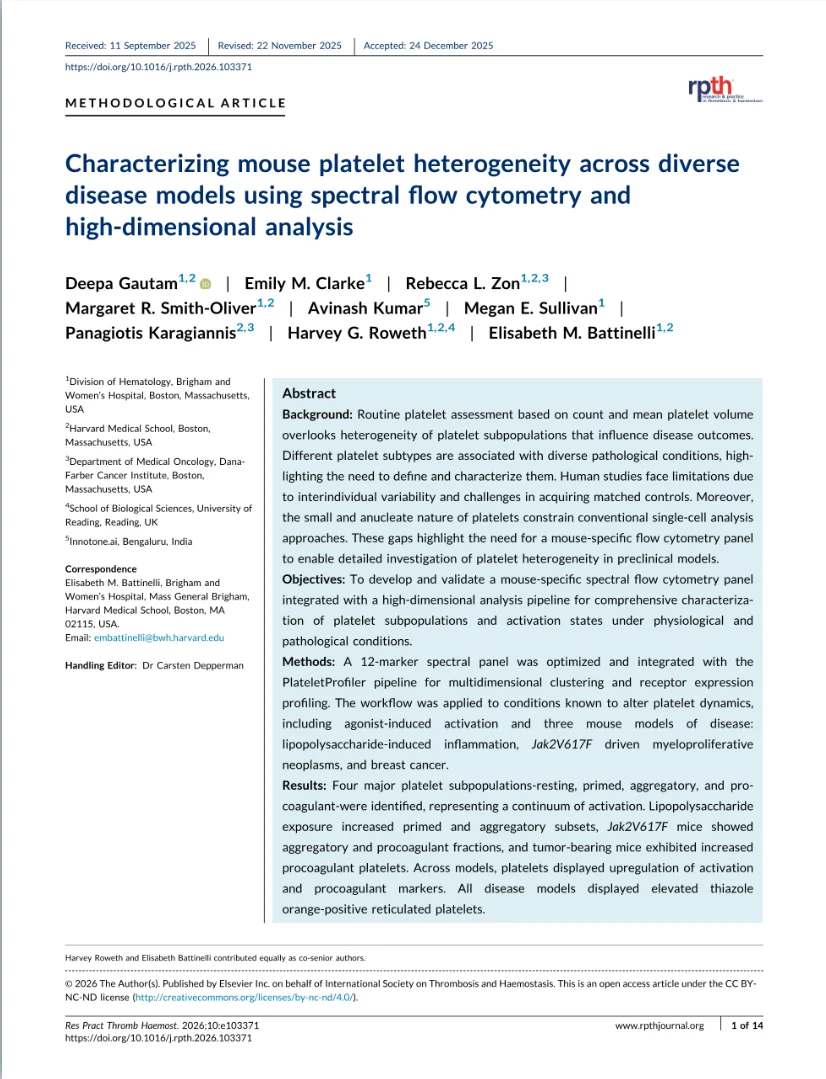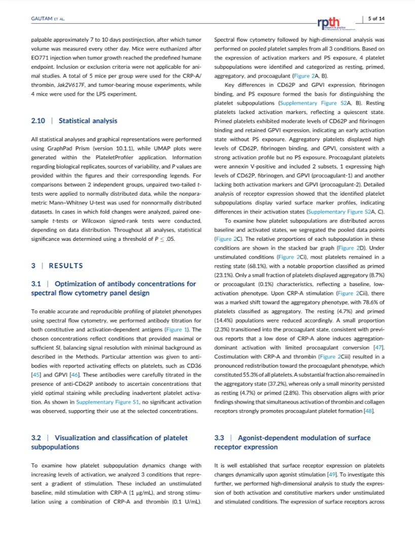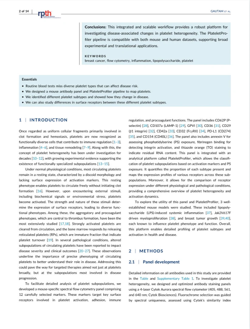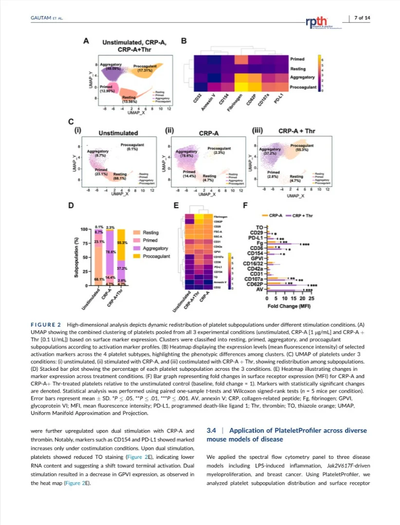 Using a 12-marker spectral flow cytometry panel pus high – dimensional clustering (PlateletProfiler), the authors map platelet states at single – cell resolution.