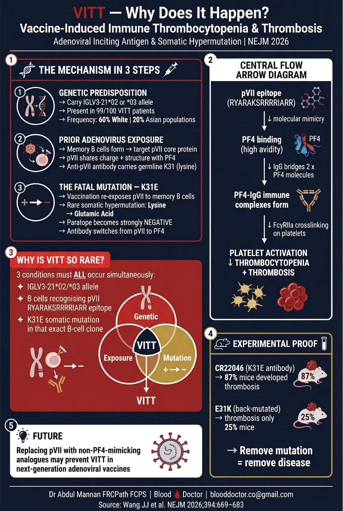 A paper just published in NEJM 2026 (Wang JJ et al. 394:669-683) explains the molecular mechanism behind Vaccine-Induced Immune Thrombocytopenia and Thrombosis.