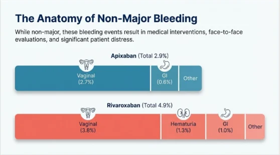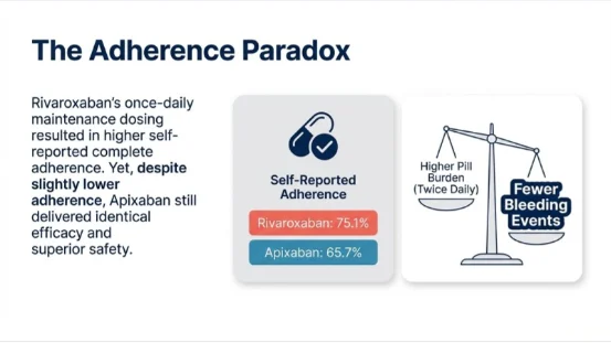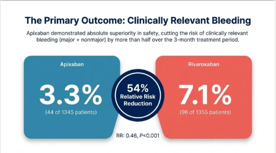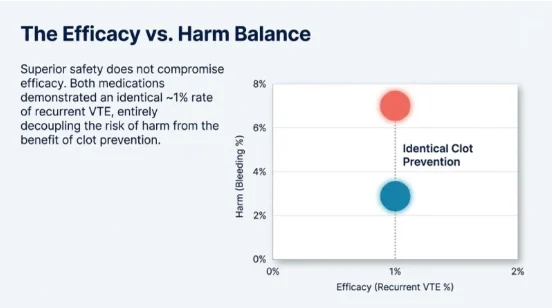 • Identical Efficacy: Both apixaban and rivaroxaban demonstrated an identical approximately one percent rate of recurrent VTE.